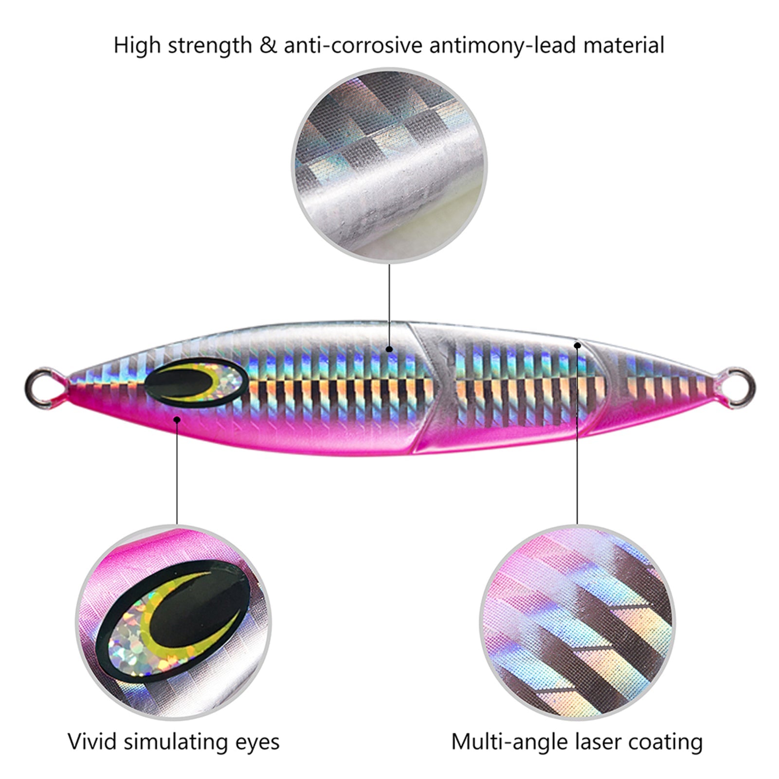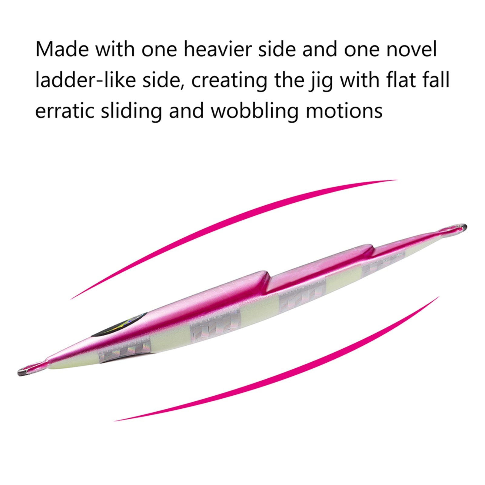 • The slow jigs are made with one heavier side and one novel ladder-like side, creating the jig with flat fall erratic sliding and wobbling motions - super easy to work to achieve peak action