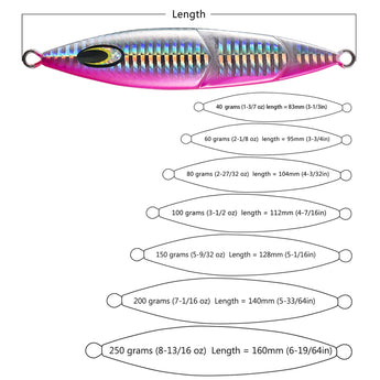 • Unlike "speed jigging" where jig falls in a straight line, the slow jigs will be fluttering all way down, giving chances to slower species to grab the lure and increasing your chances of catching fish