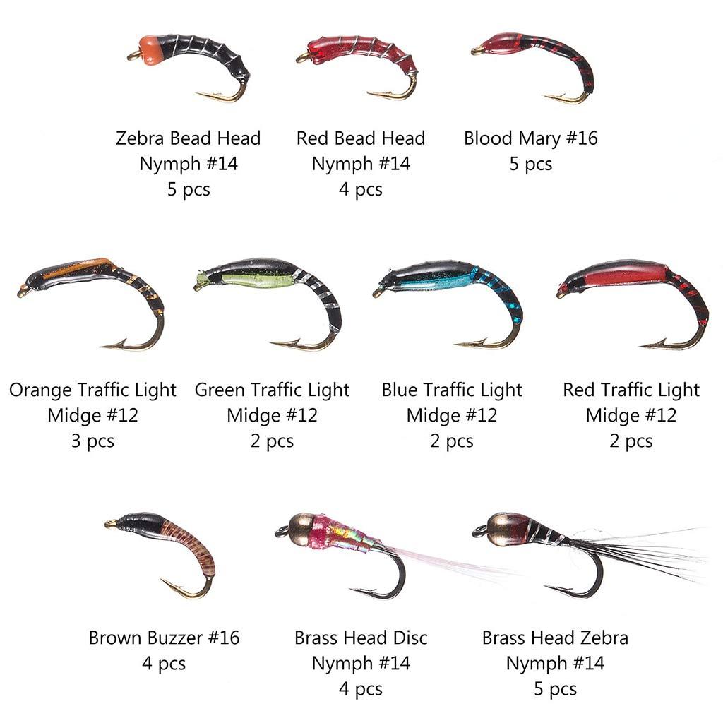 • The 36 pcs nymphs in this collection are all coated with clear epoxy for maximum longevity and to insure weight and give the flies a brilliant sheen, adding an extra touch of realism