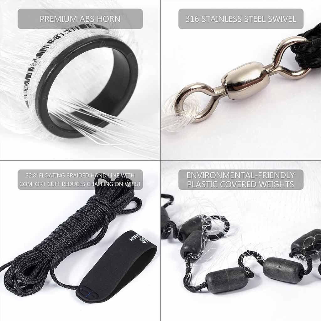 Fishing Cast Net 1/4-Inch with Utility Bucket for Bait Fish