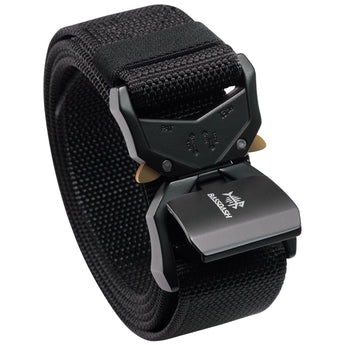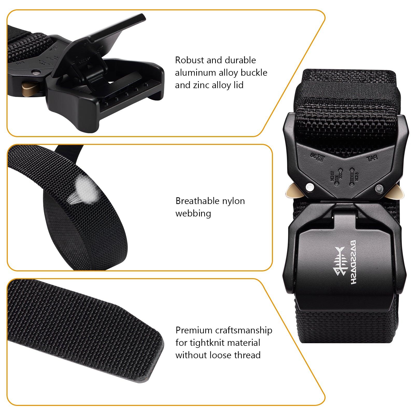 • This tactical belt features a heavy-duty, military grade metal buckle - Robust and durable aluminum alloy buckle and zinc alloy lid with max bearing weight 10kn/1020kg.