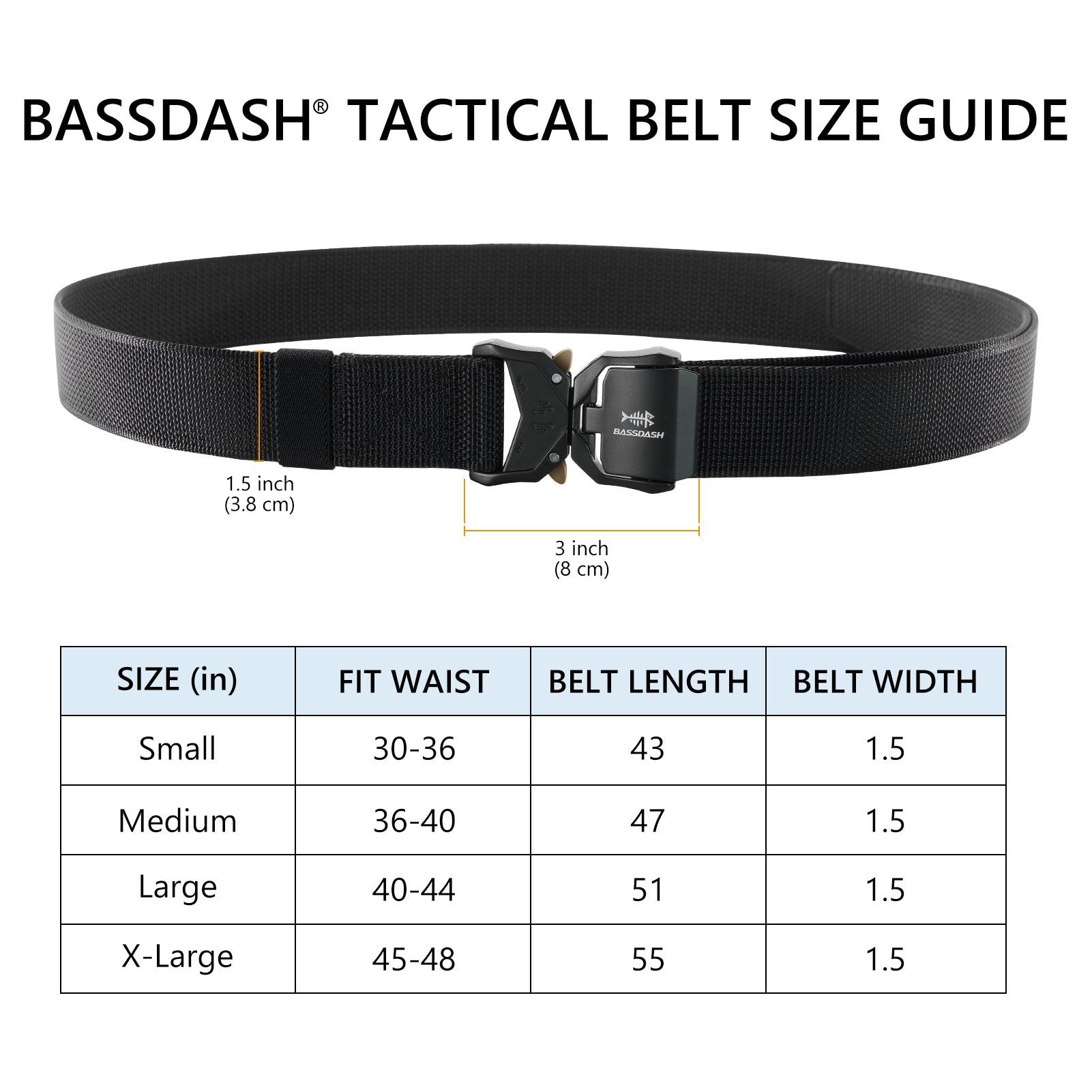 • The utility belt has 4 sizes with full length from 43” to 55” to fit waist size from 30” to 48”; Belt width 1.5”; Buckle width 2.0”.