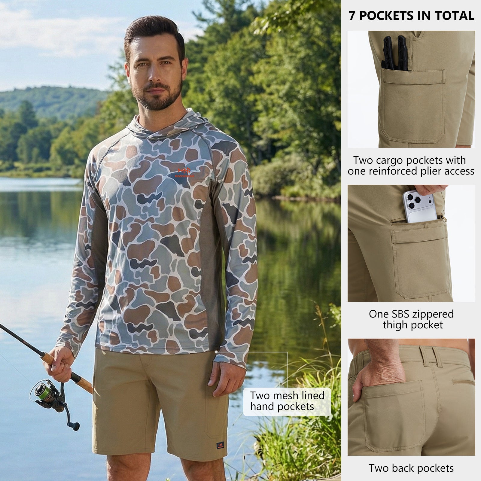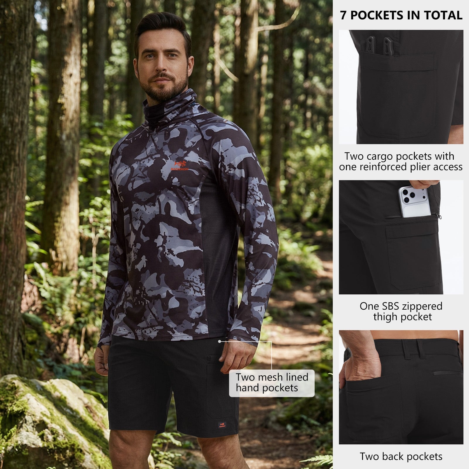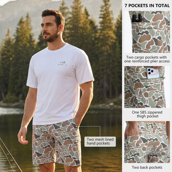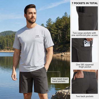 Designed for the active outdoors, these versatile shorts combine sun protection with smart functionality. Features UPF 50+ fabric with water-resistant, quick-dry, and four-way stretch properties, keeping you cool and protected. 7 secure pockets along with a reinforced plier access and a gear loop, offer hands-free convenience. With a comfortable regular fit and a moisture-wicking partial elastic waistband, they’re built for all-day comfy active wear on the water, trail, or around town.