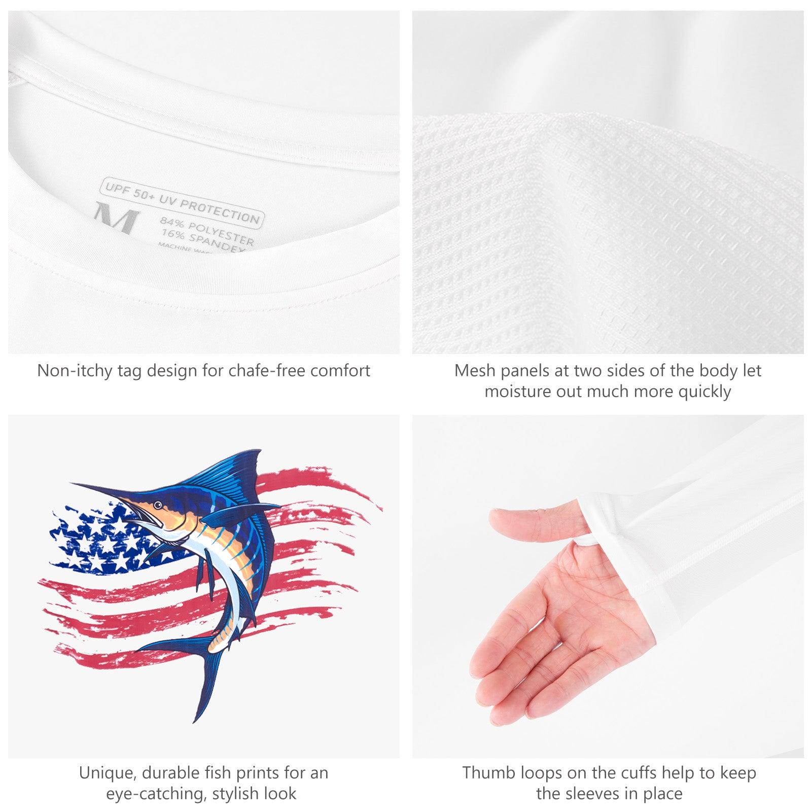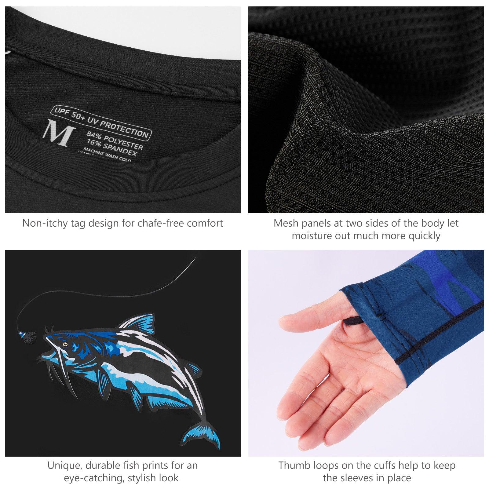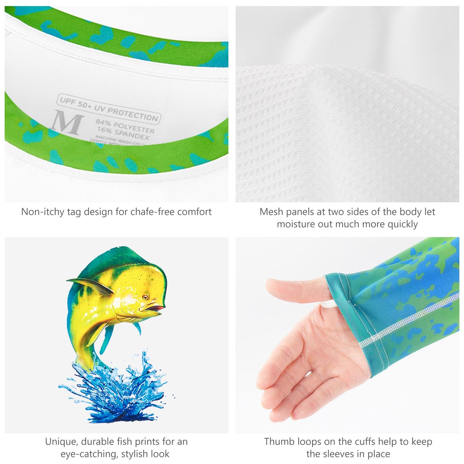 Crafted for comfort and sun protection, these unique and eye-catching fishing shirts feature biologically accurate and colorfully illustrated fish prints. The BASSDASH men's fishing long-sleeved shirt is made from lightweight fabric with moisture wicking and 4-way stretch for unrestricted movement. Mesh panels on the sides provide optimal ventilation, making it breathable for all-day comfort.