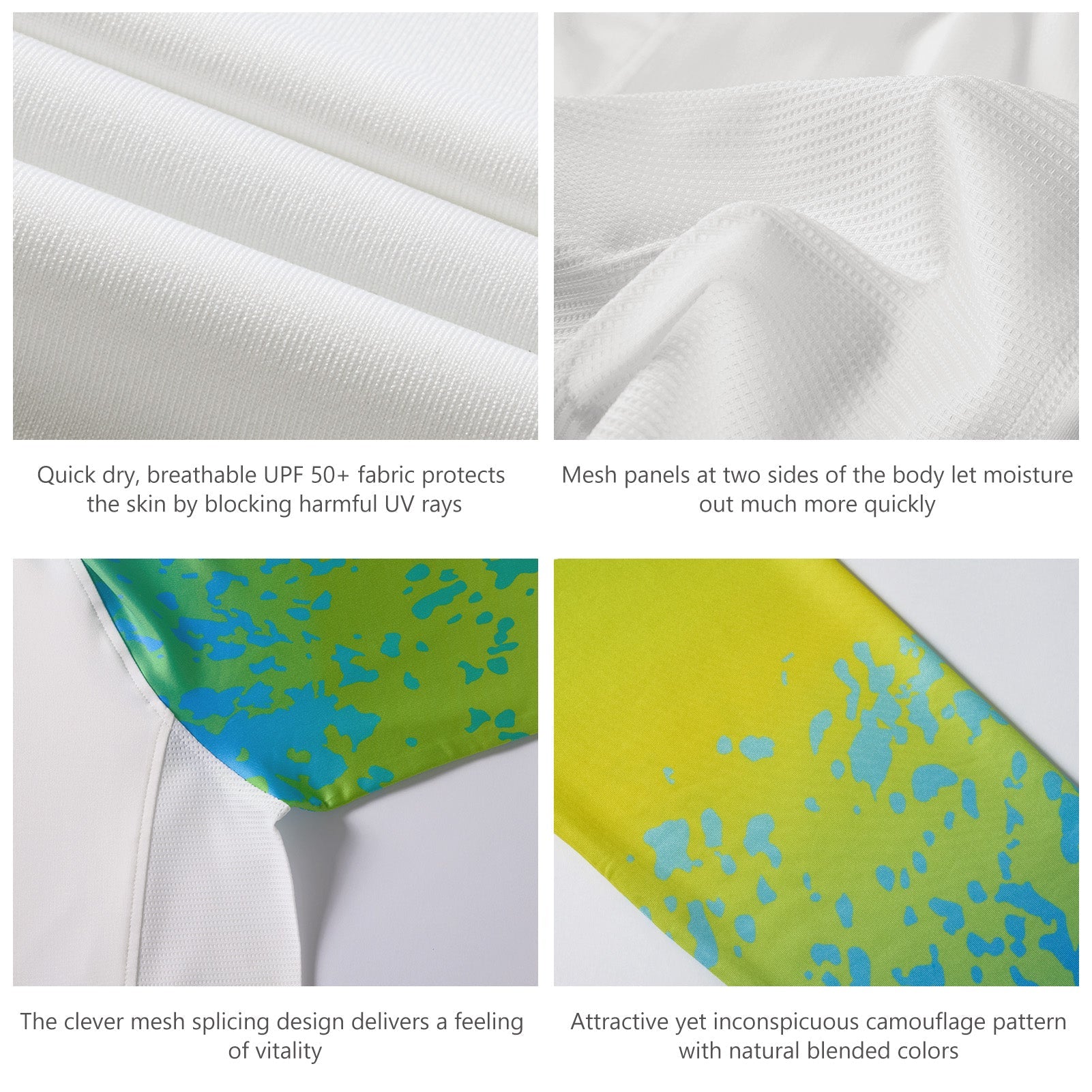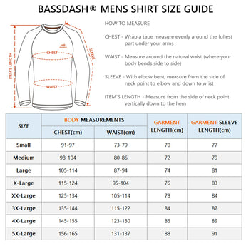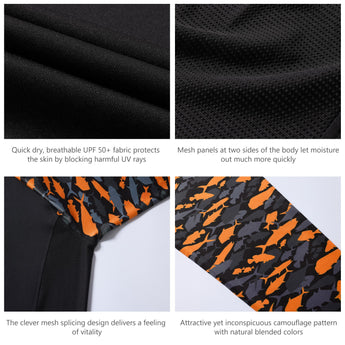 Bassdash UPF 50+ Camo Fishing Shirts are made from breathable, advanced Knitted UV protection 84% polyester, 16% spandex fabric. No pilling, no shrinkage. Perfect for all types of outdoor activities like fishing, kayaking, hiking, motorcycling, biking, trekking, hunting and more.