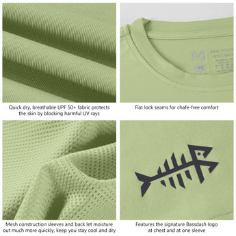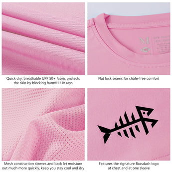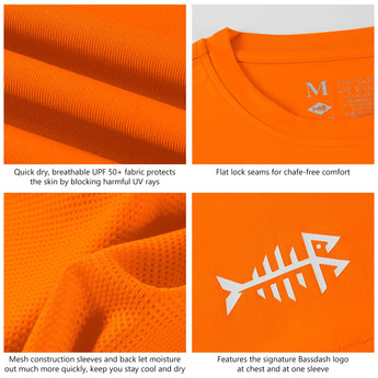 The Bassdash performance fishing T-shirts are designed for comfort, with lightweight fabric and a relaxed fit. The logo on chest and on the back adds character and style for those who like to make a statement with what they wear! It is also a great gift for the fishing fanatic in your life!