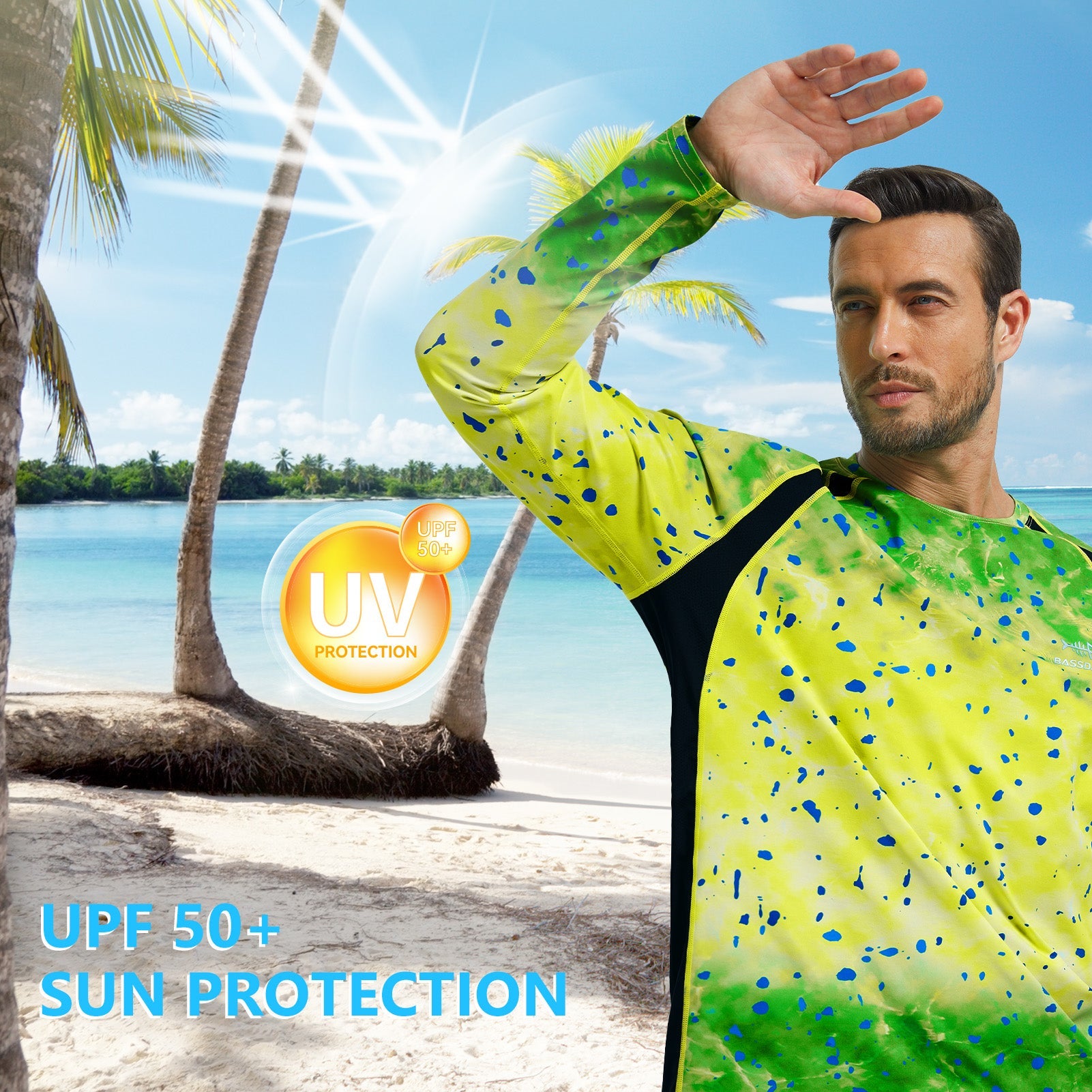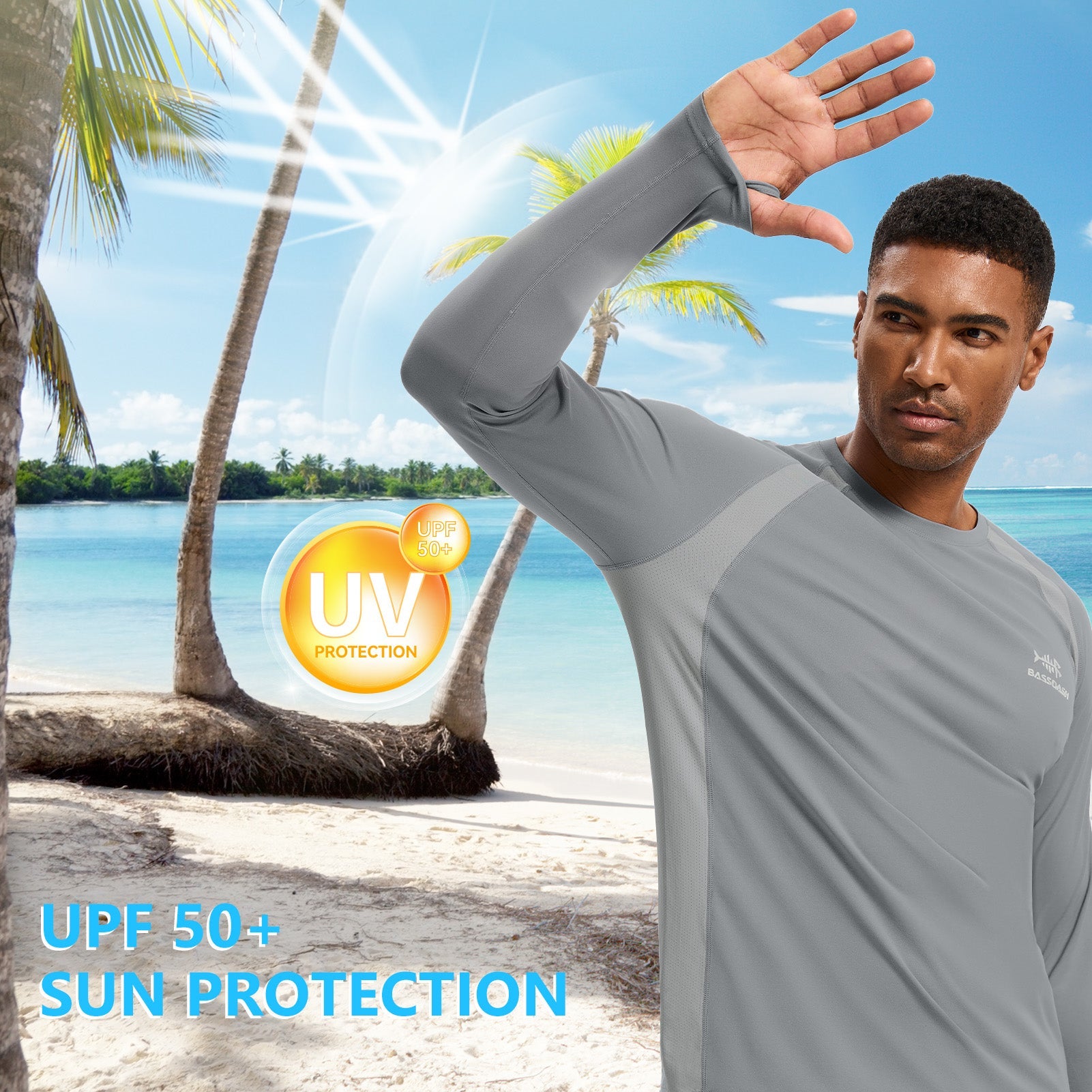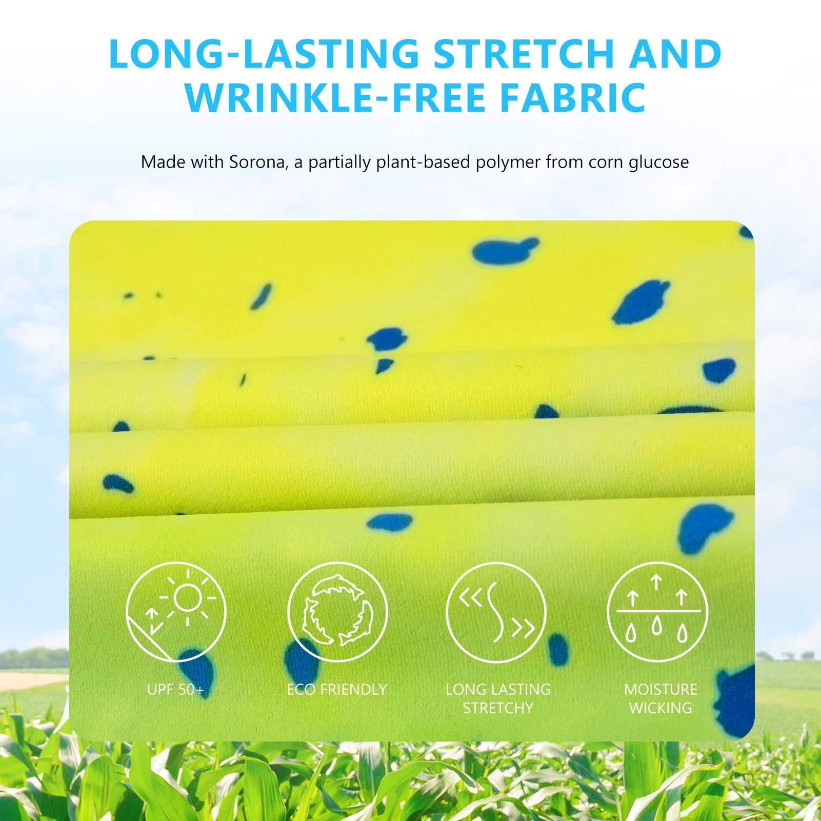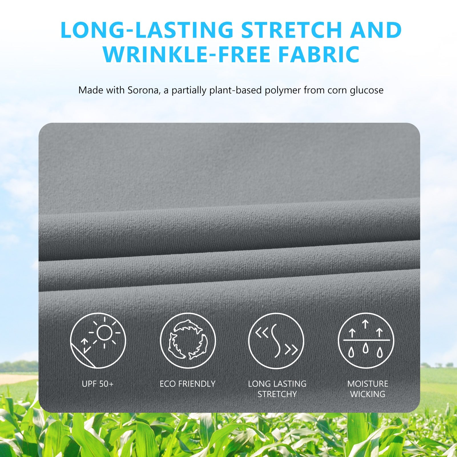 This eco-friendly long sleeve sun shirt is crafted with a blend of 53% plant-based Sorona polyester and 47% polyester, offering long-lasting stretch and shape retention. Featuring UPF 50+ sun protection and breathable mesh side splices, and thumb loops, the performance shirts are perfect for outdoor activities and daily wear.