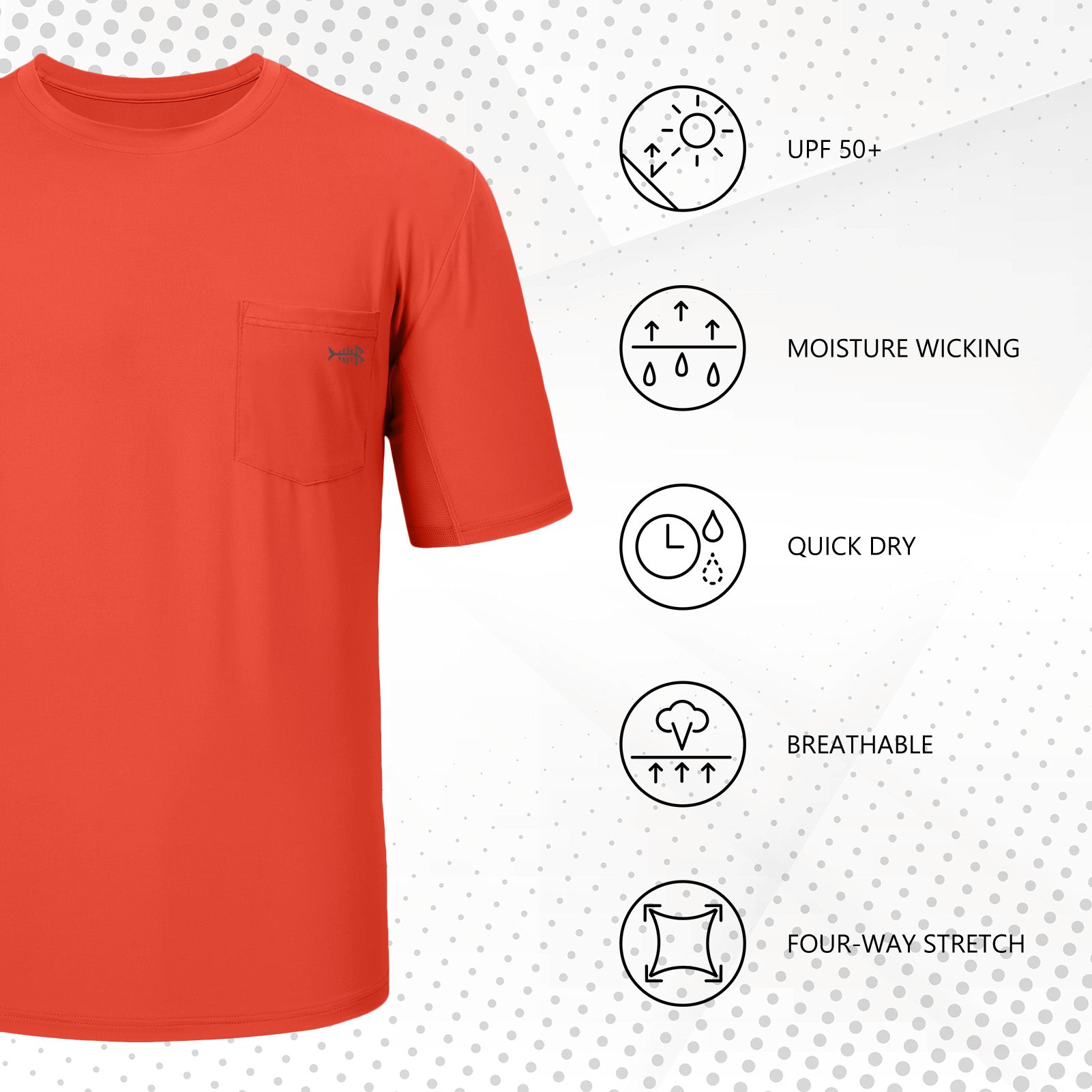 - Left-side chest pocket with the Bassdash fish logo delivers details and adds storage.