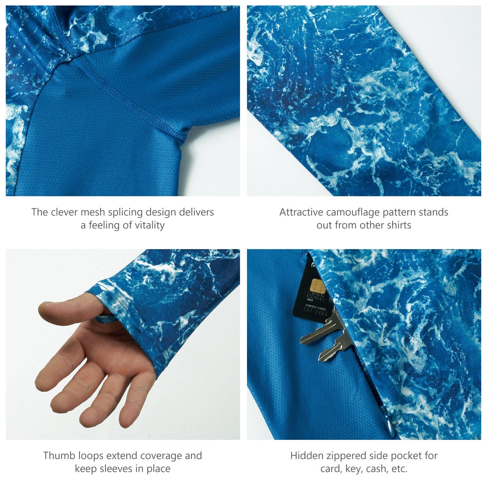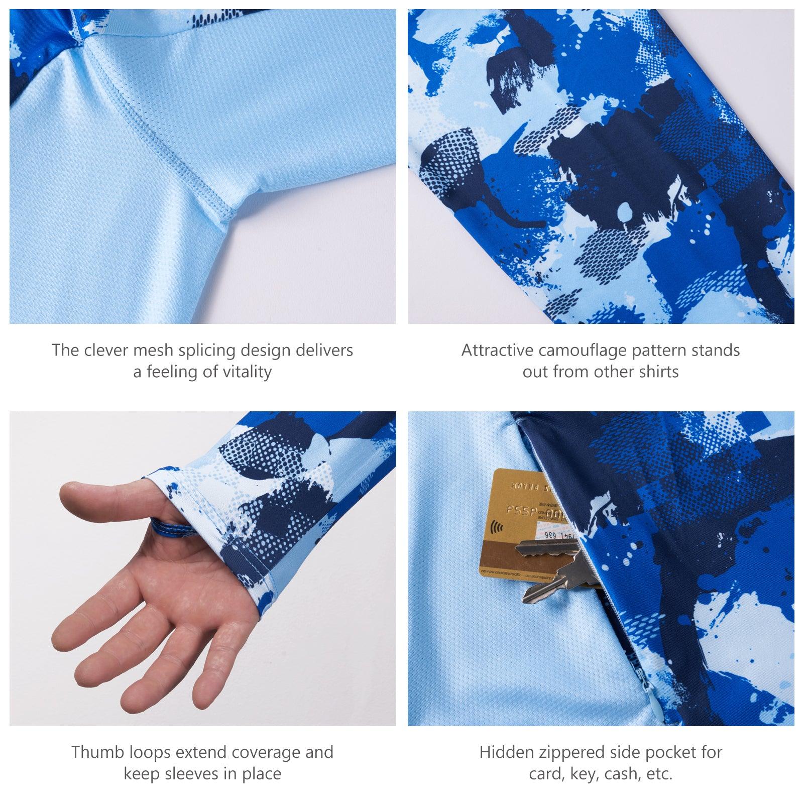 Men's UPF 50+ Camo Fishing Hoodie Shirts with Face Cover FS25M