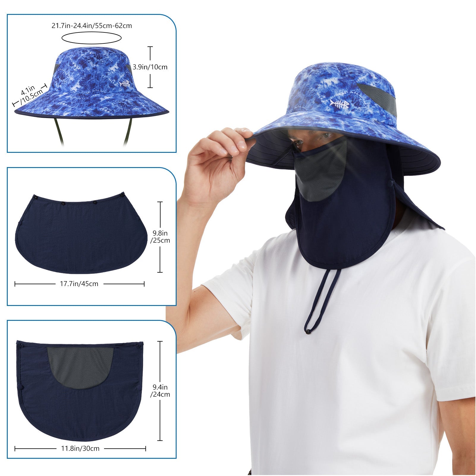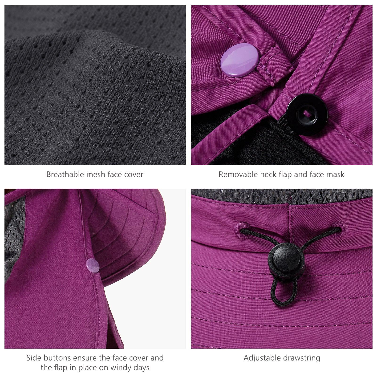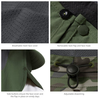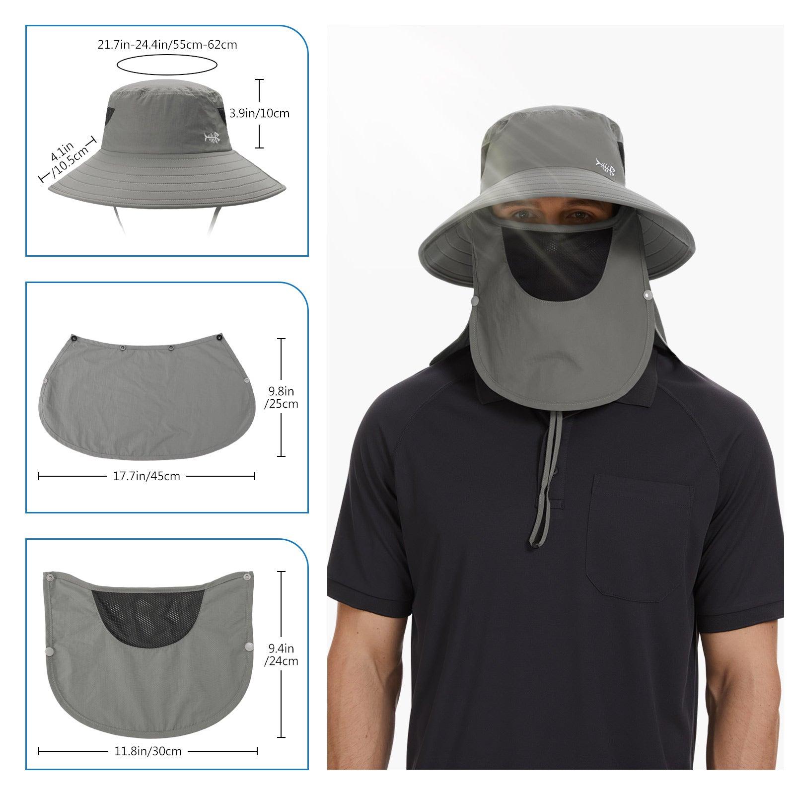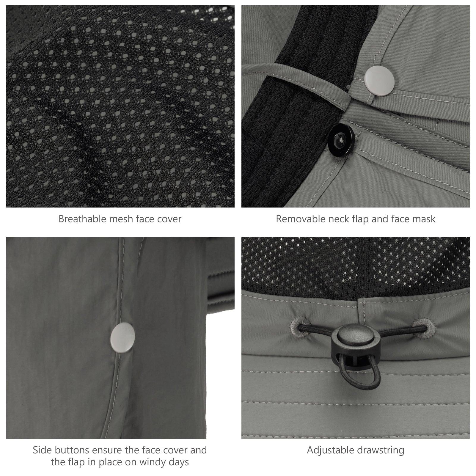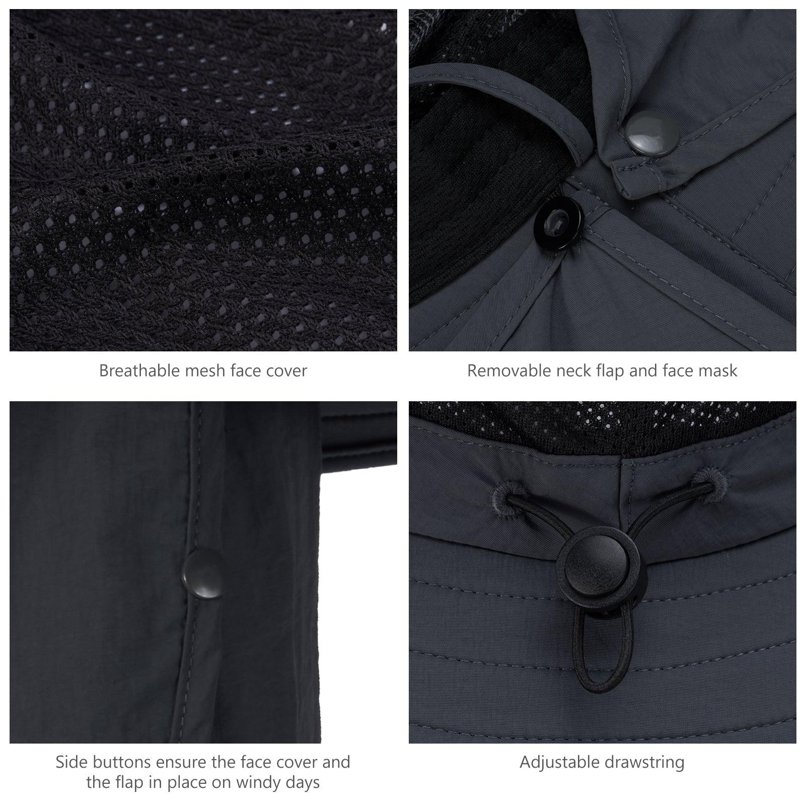 • Features wide brim, and removable face cover & neck flap to protect you against harmful UV rays from different angles and offer 360-degree sun protection for your face, ears and neck; The face cover and neck flap are detachable to provide multiple wearing ways to fit your different needs.
