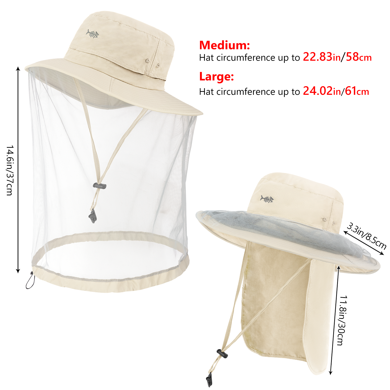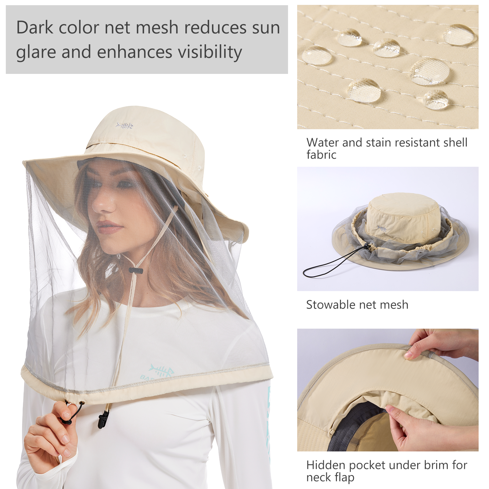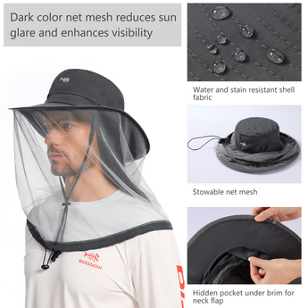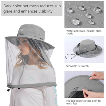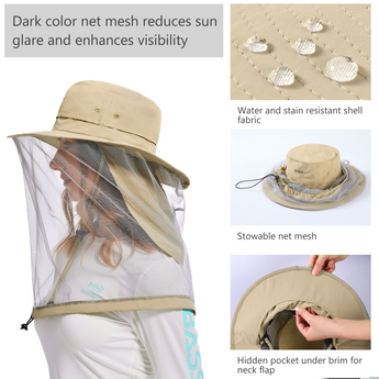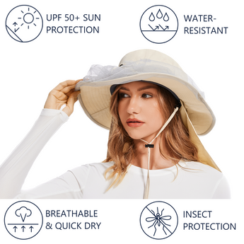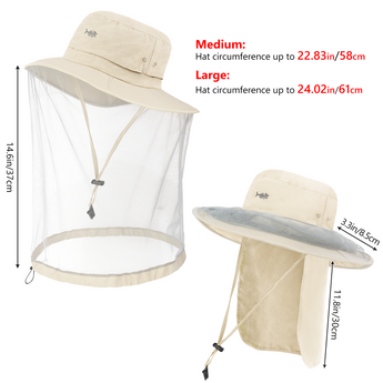 UPF 50+ Net Mosquito Hat with Neck Flap