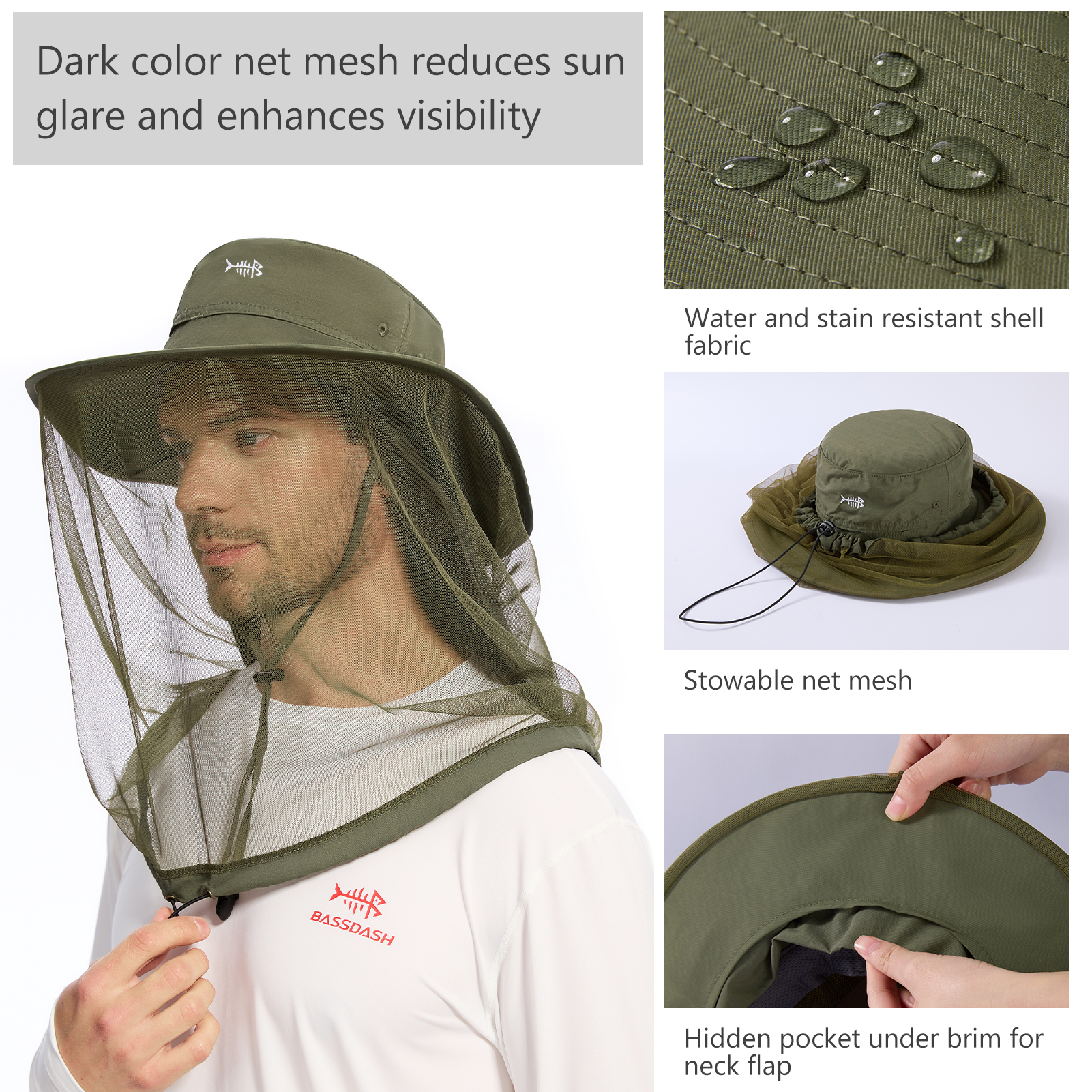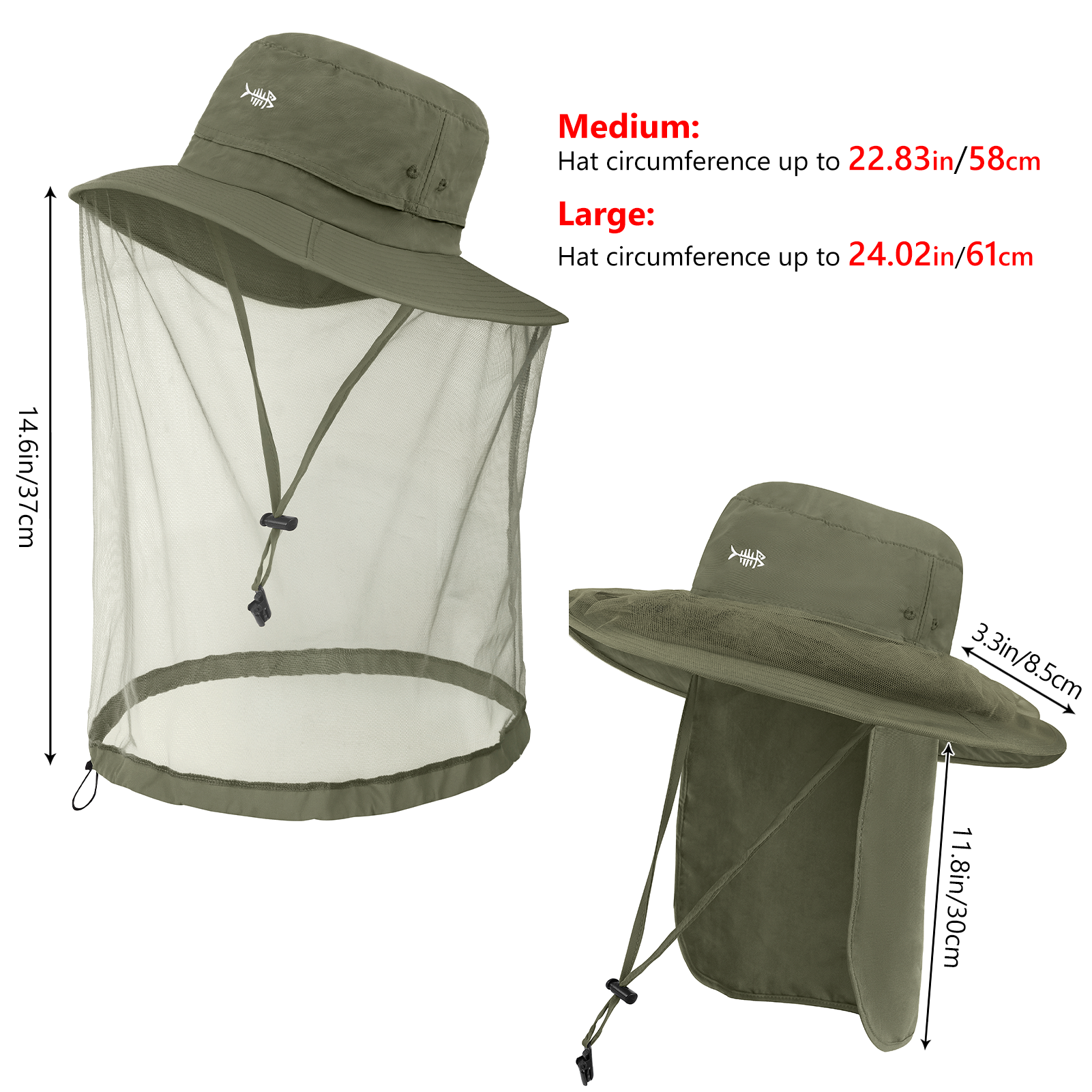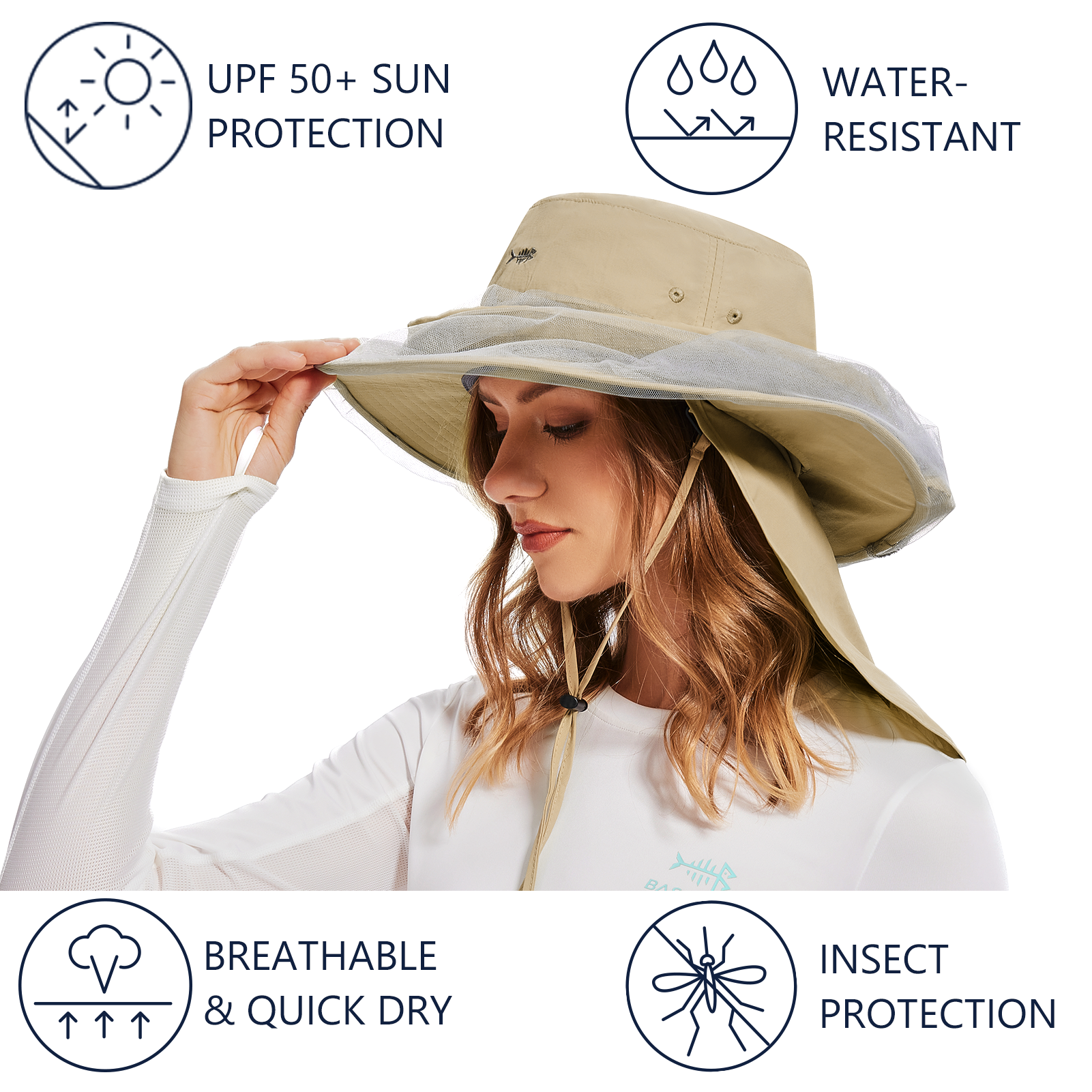 UPF 50+ Net Mosquito Hat with Neck Flap