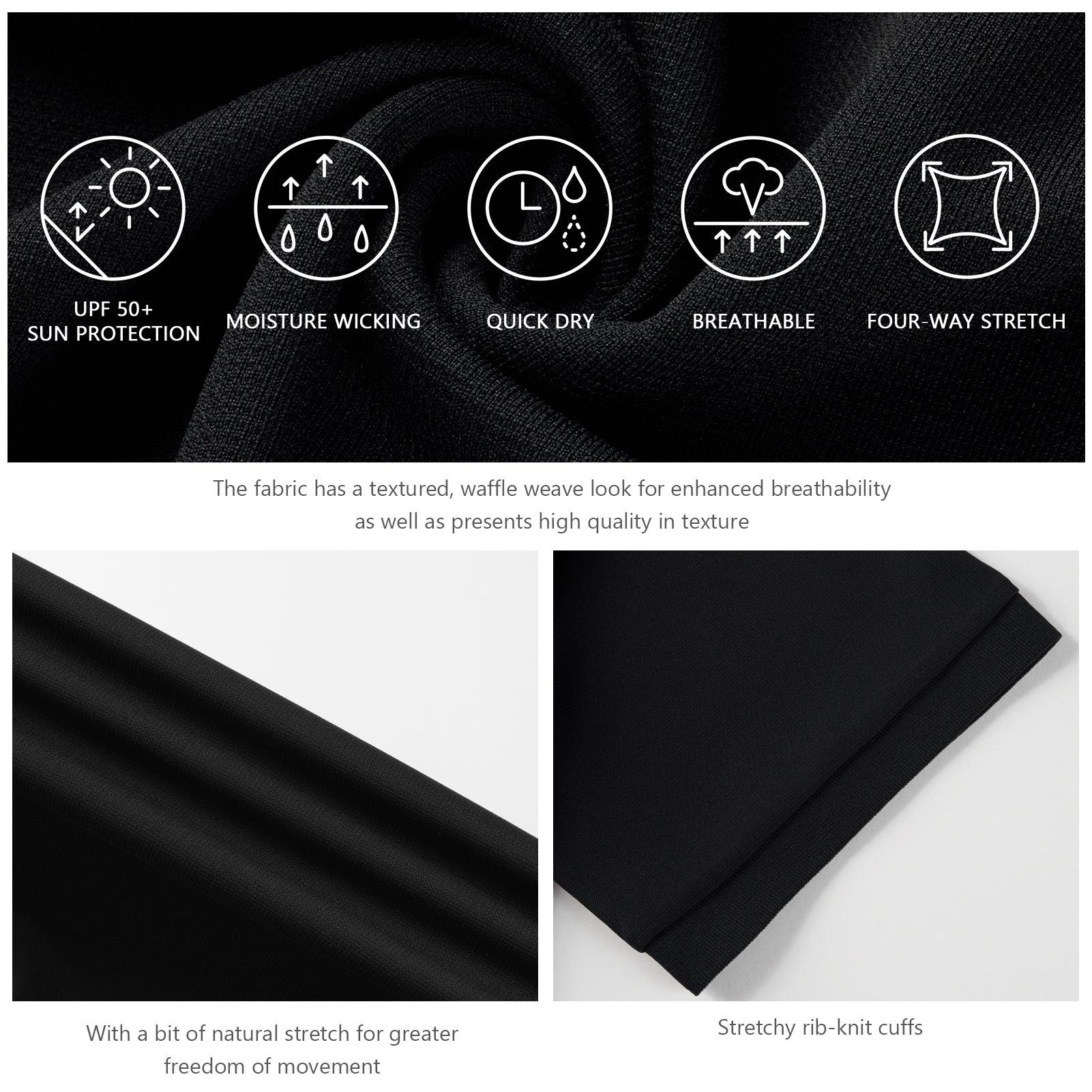 Knitted from advanced UPF 50+ UV fabric that protects your skin from the sun's 98% harmful UVA/UVB ray; Technology treatment helps wick away moisture and perspiration to keep you feeling dry and comfortable.