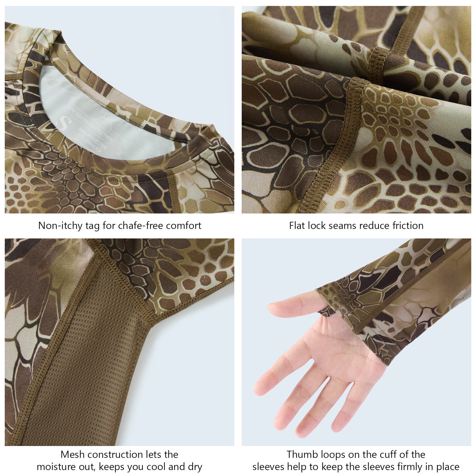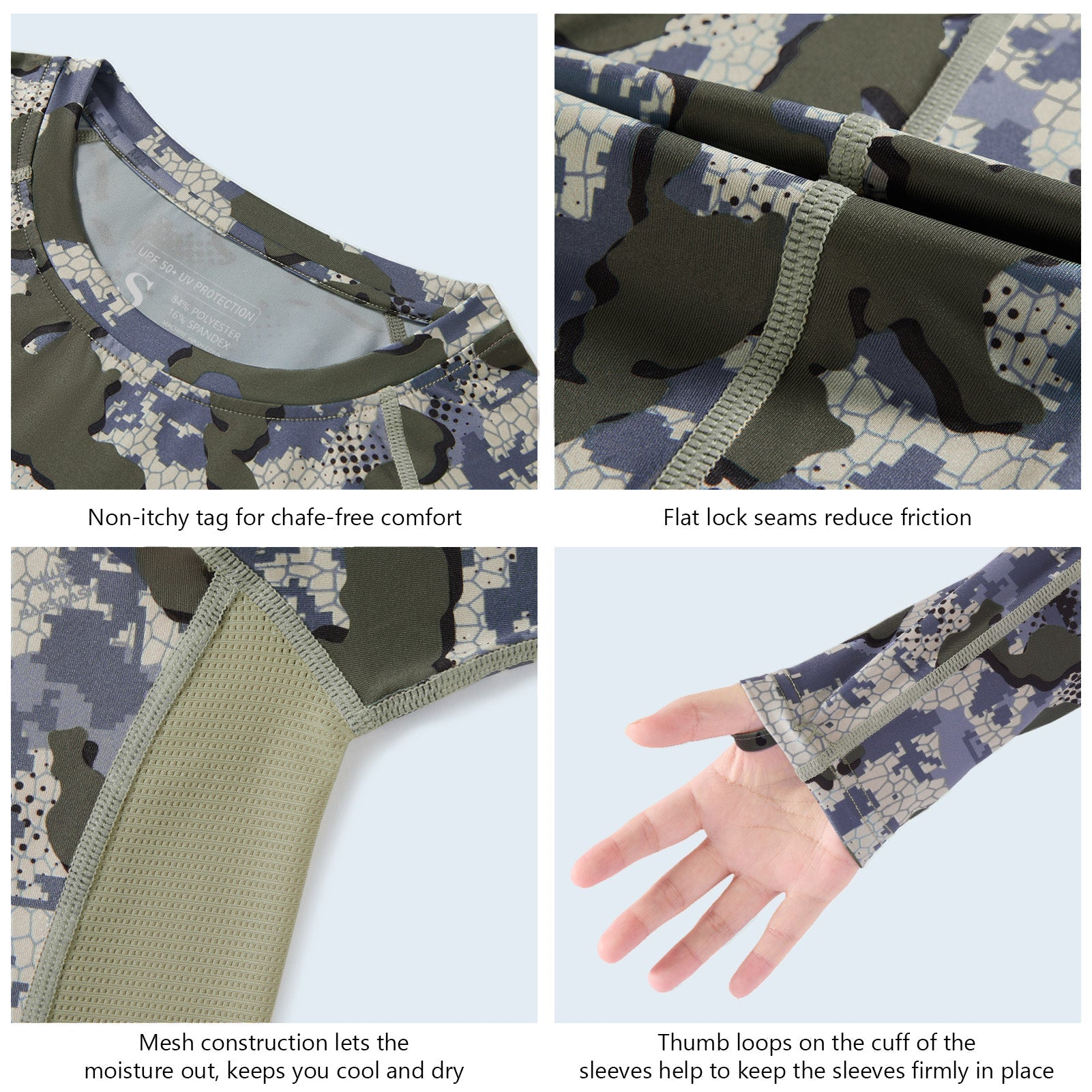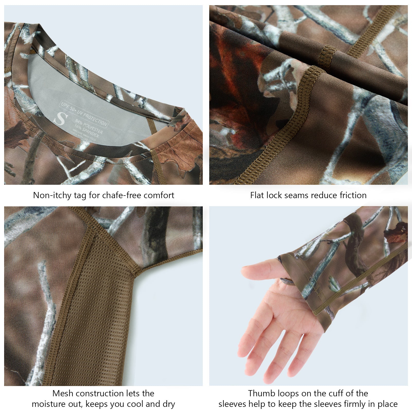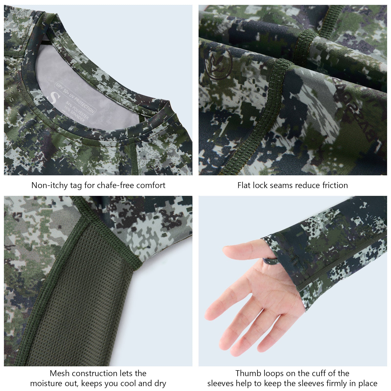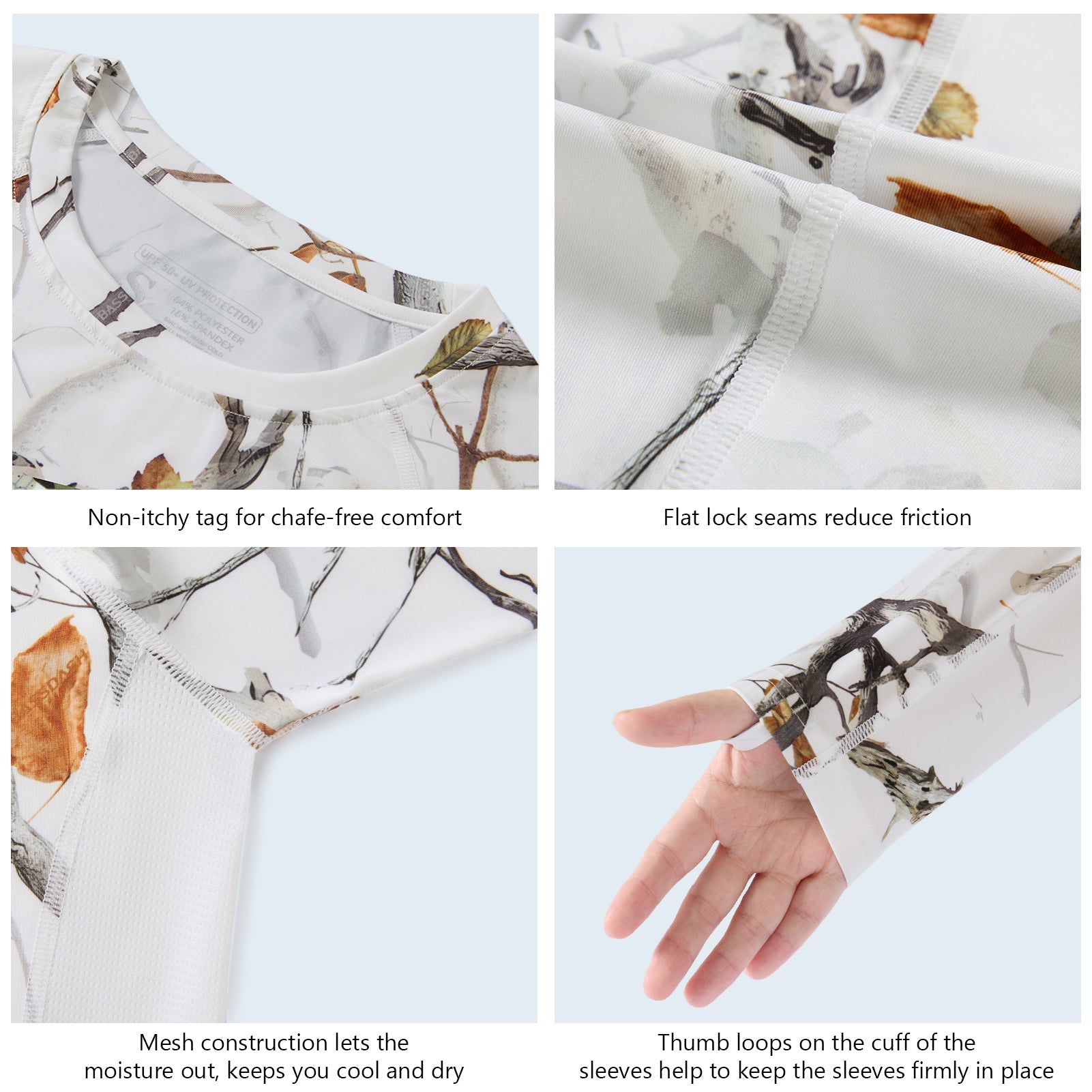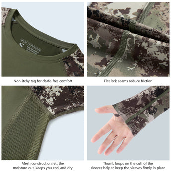 • Non-itchy flat lock seams and tagless collar for an extra skin-friendly comfort; Thumb holes keep the long sleeves in place.