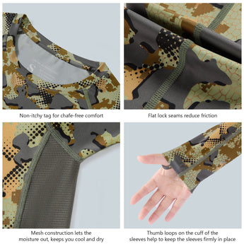 • This UV long sleeve shirt is great for any outdoor activities including but not limited to hunting, climbing, fishing, hiking on hot days or for layering on cooler days.
