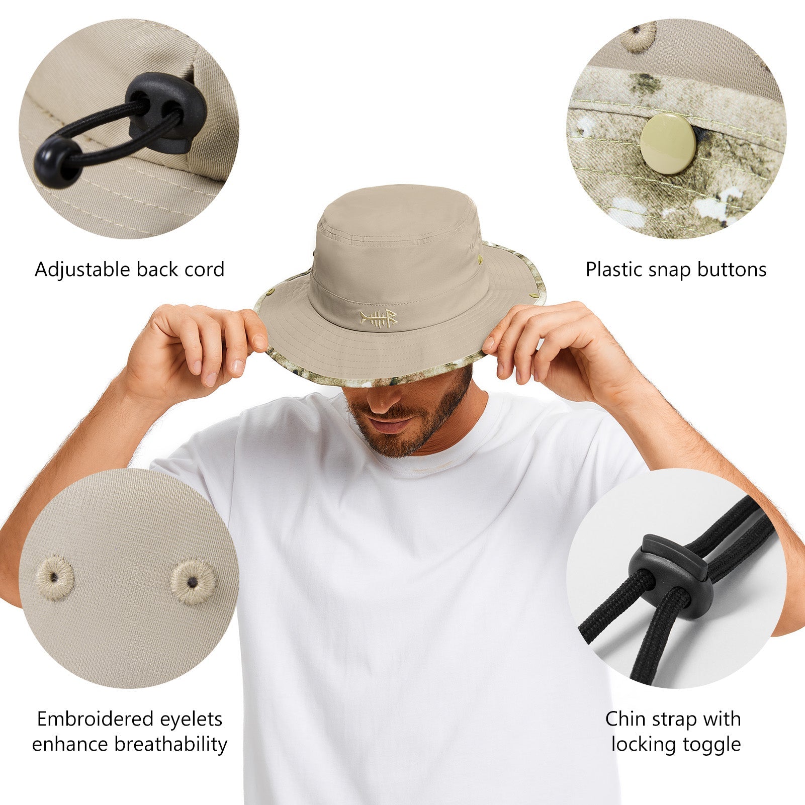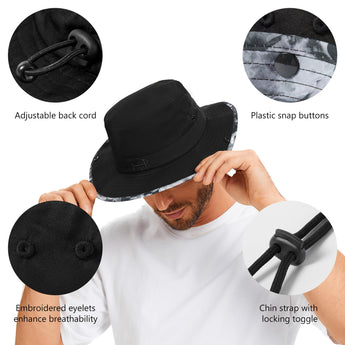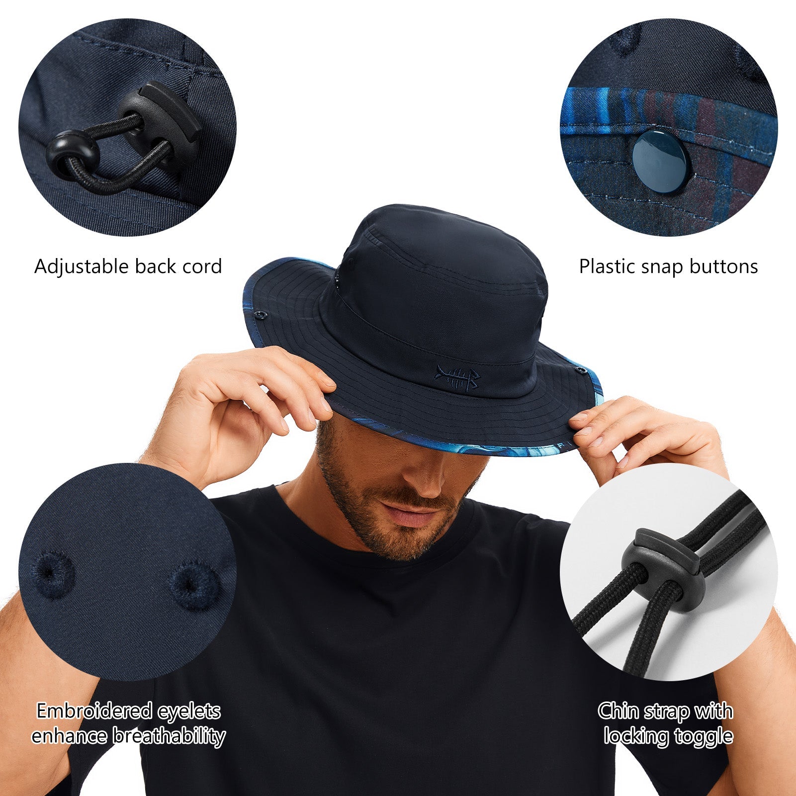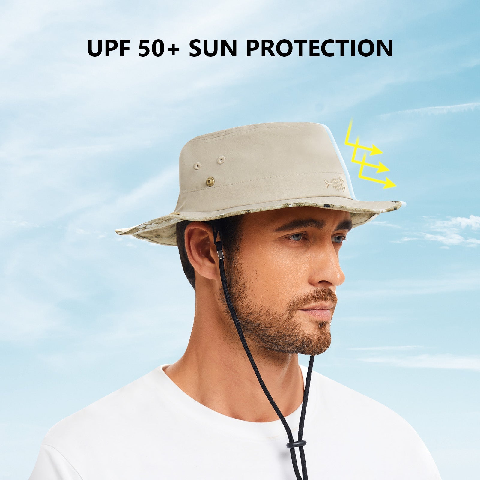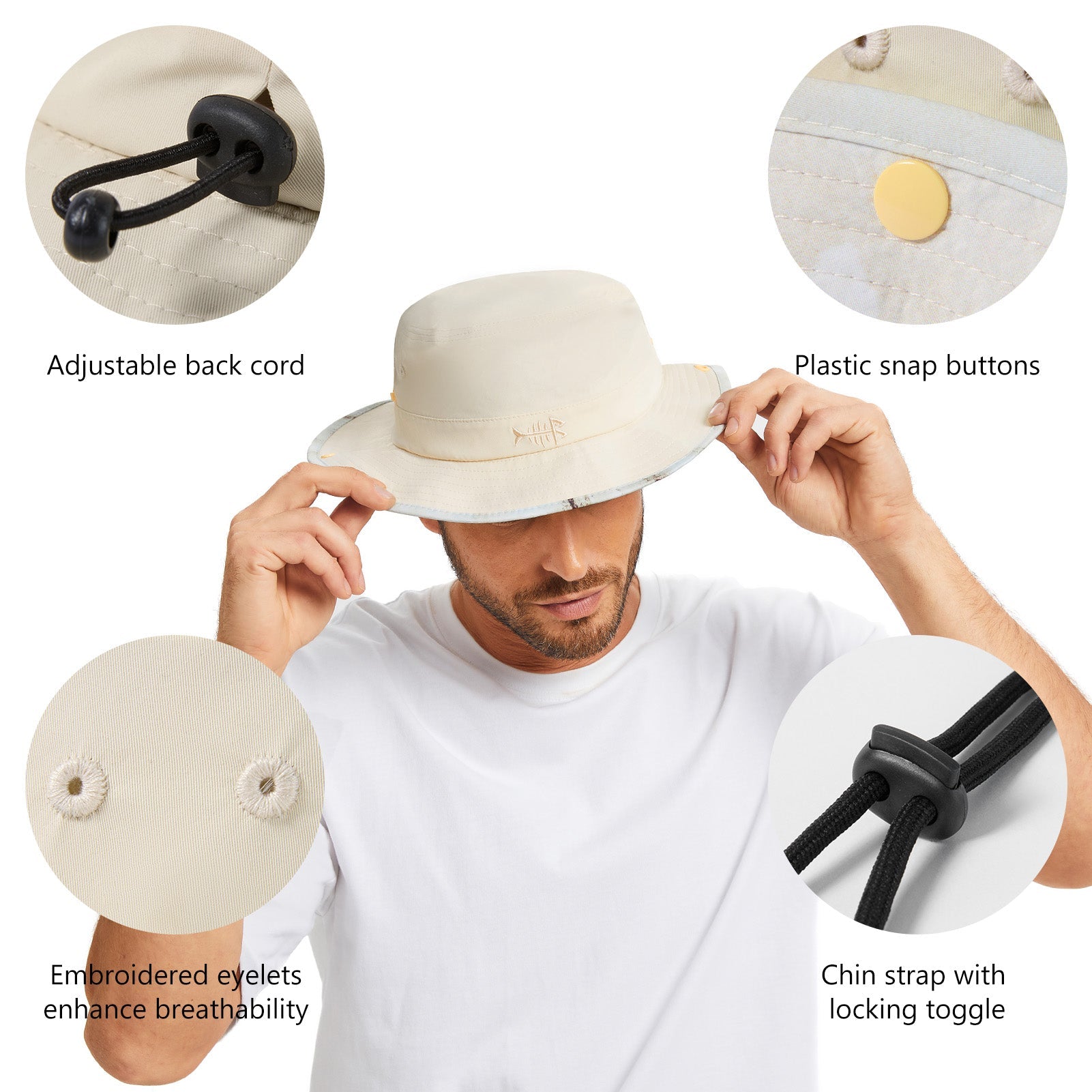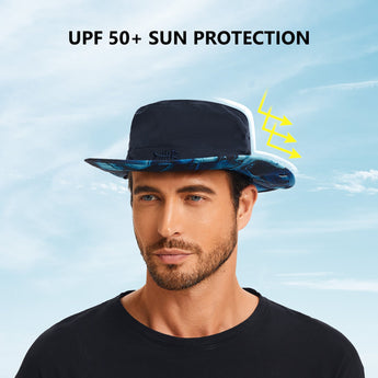 This UPF 50+ bucket hat combines breathable fabric, premium craftsmanship, and a patterned under-brim for performance, comfort, and style. Ideal for hiking, cycling, fishing, gardening, and more - embrace the sun in confidence.