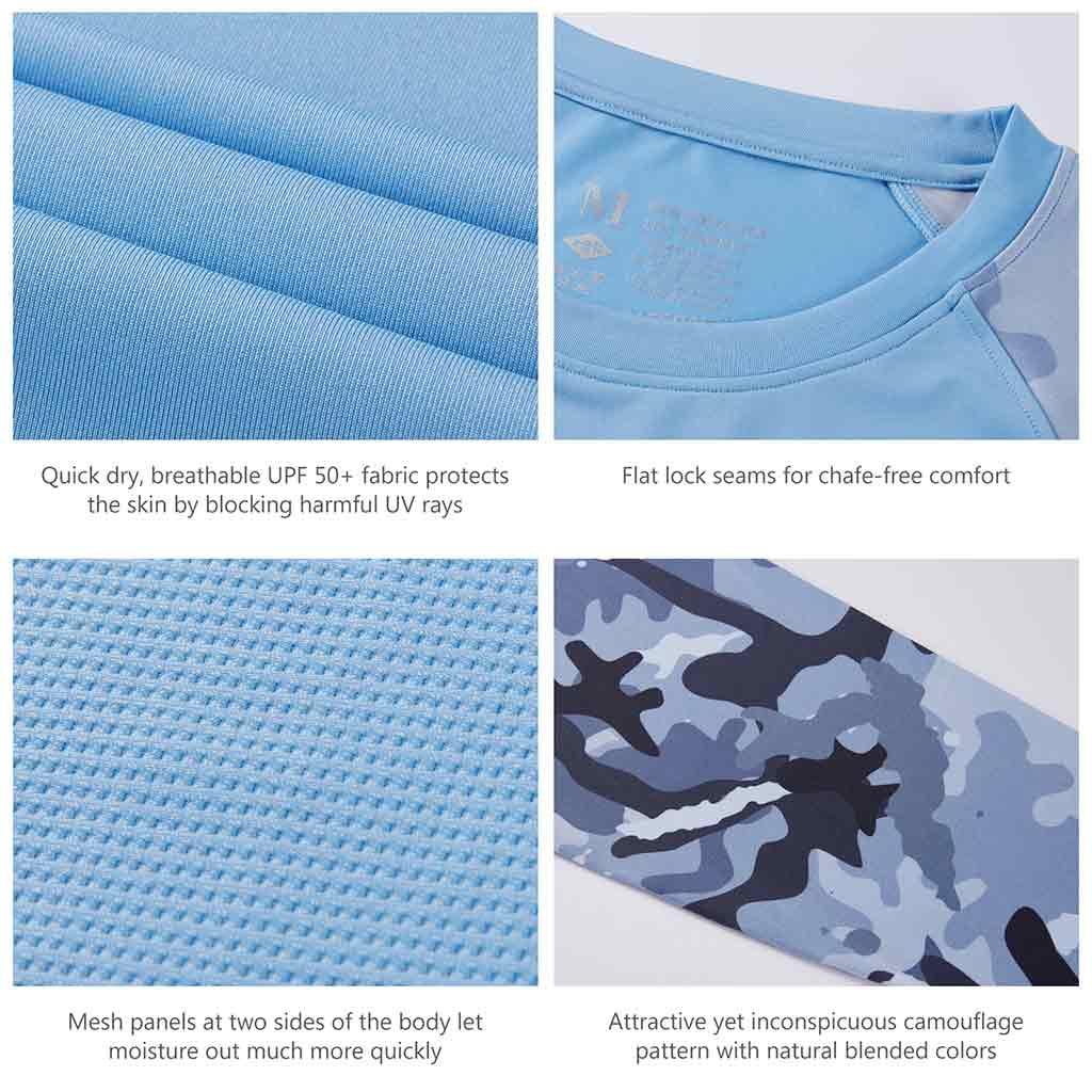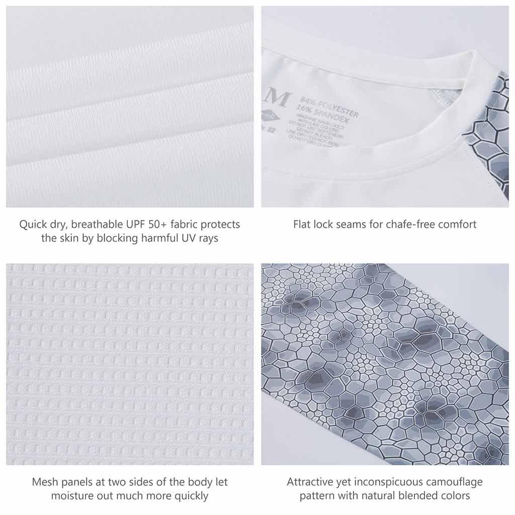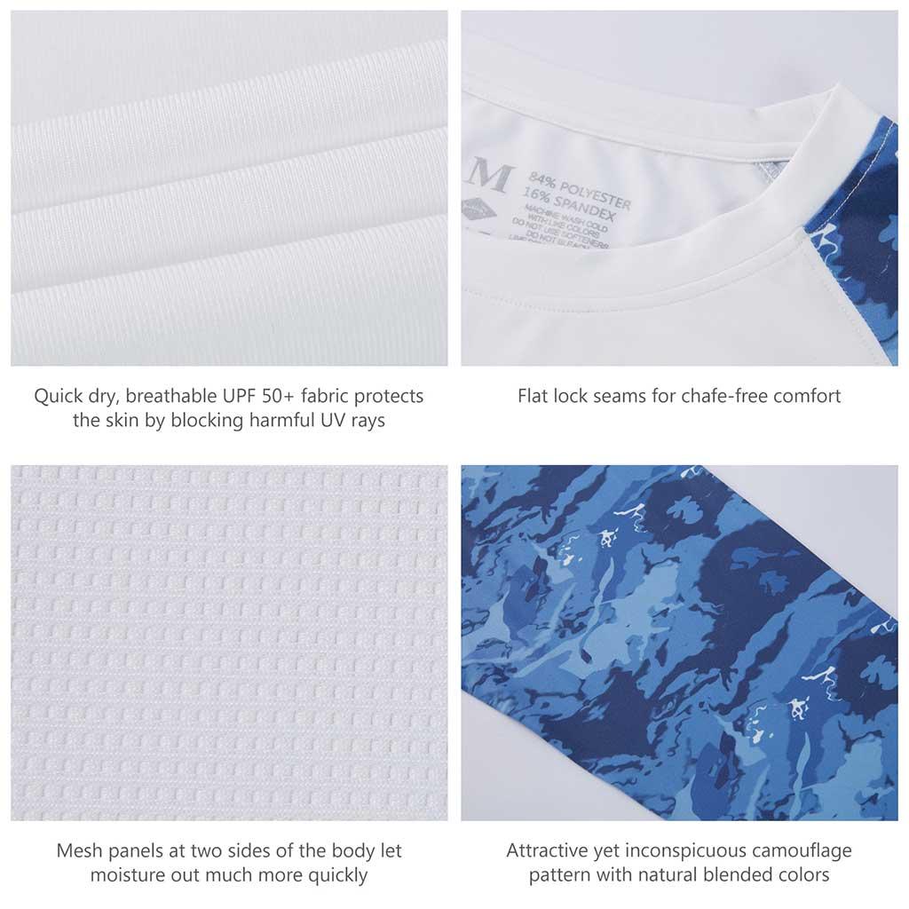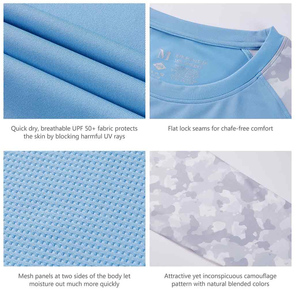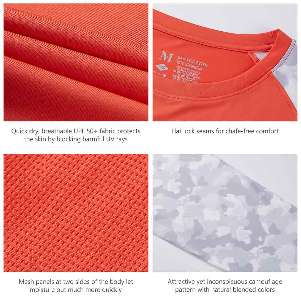 Bassdash UPF 50+ Camo Fishing Shirts are made from breathable, advanced Knitted UV protection 84% polyester, 16% spandex fabric. No pilling, no shrinkage. Perfect for all types of outdoor activities like fishing, kayaking, hiking, motorcycling, biking, trekking, hunting and more.
