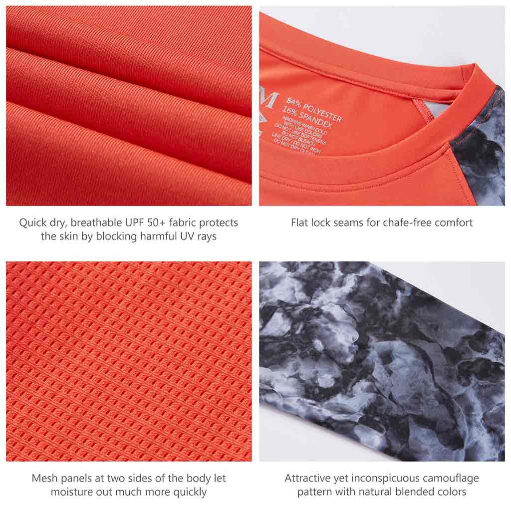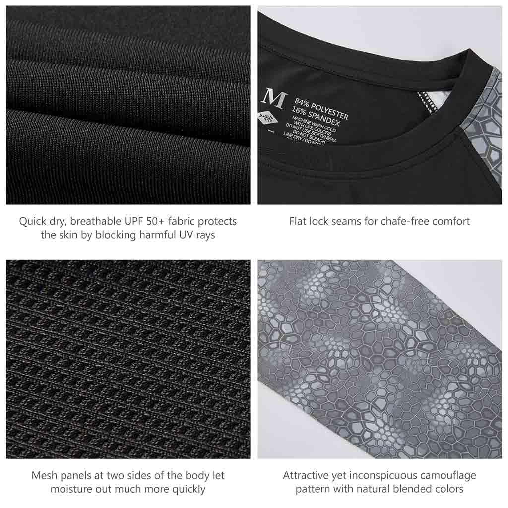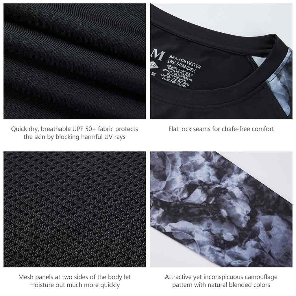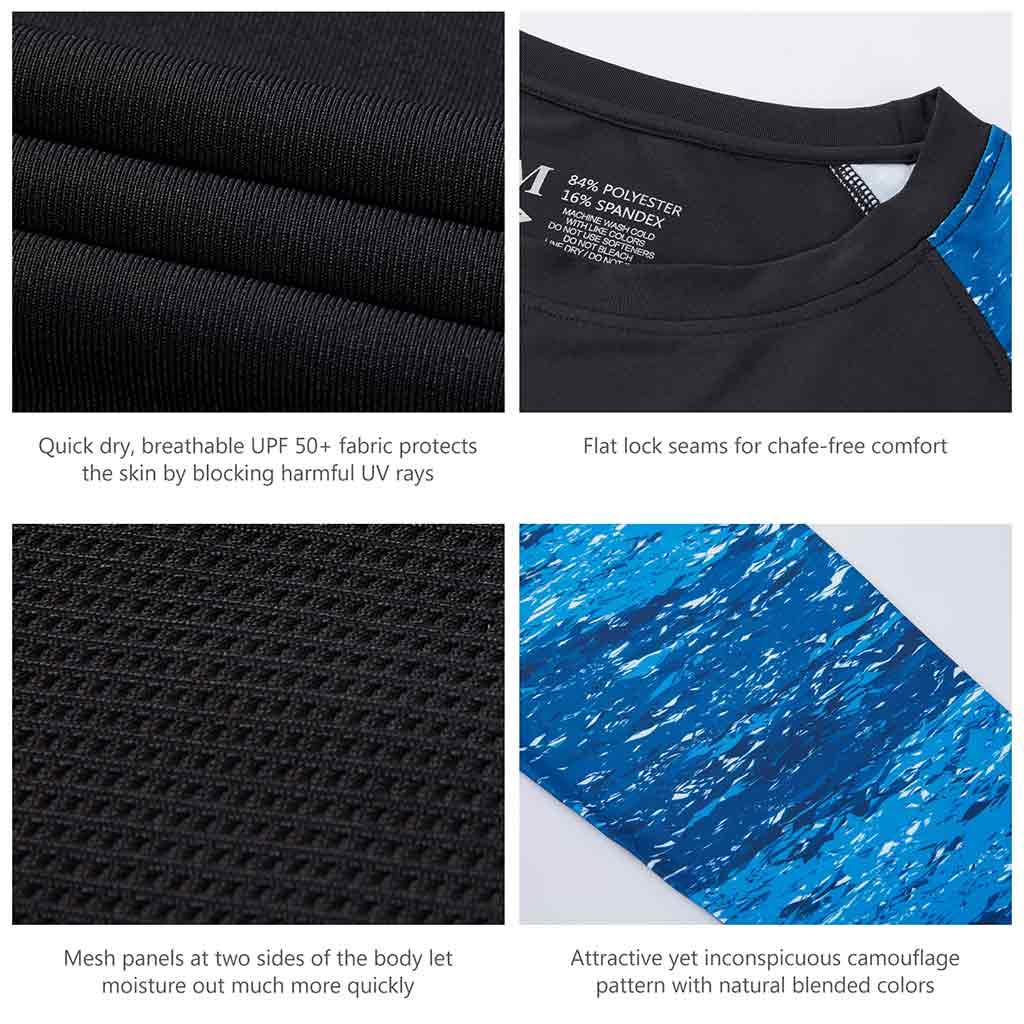 Bassdash UPF 50+ Camo Fishing Shirts are made from breathable, advanced Knitted UV protection 84% polyester, 16% spandex fabric. No pilling, no shrinkage. Perfect for all types of outdoor activities like fishing, kayaking, hiking, motorcycling, biking, trekking, hunting and more.