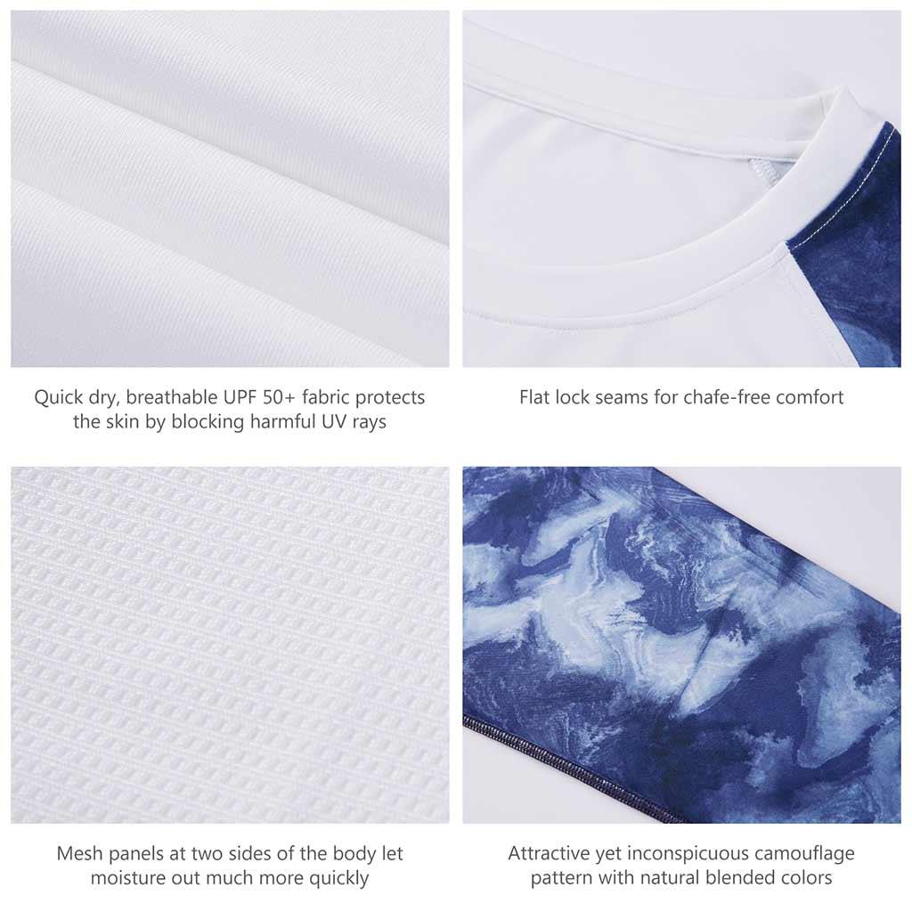 - Rating UPF 50+ fabric protects your skin from the harmful UVA/UVB rays, keeping you cool all day in the sun with confidence