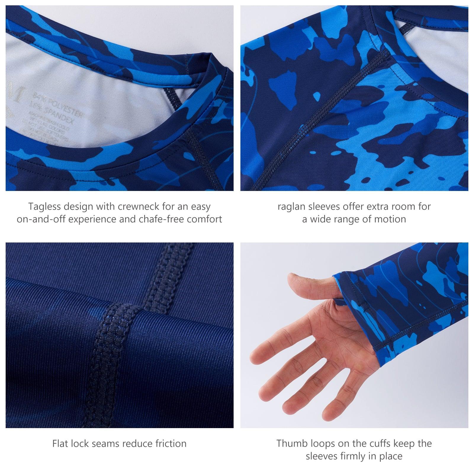 - Loose cut and raglan sleeve design fits most body shapes; Built-in thumb loops secure the sleeves in place when you casting a rod.