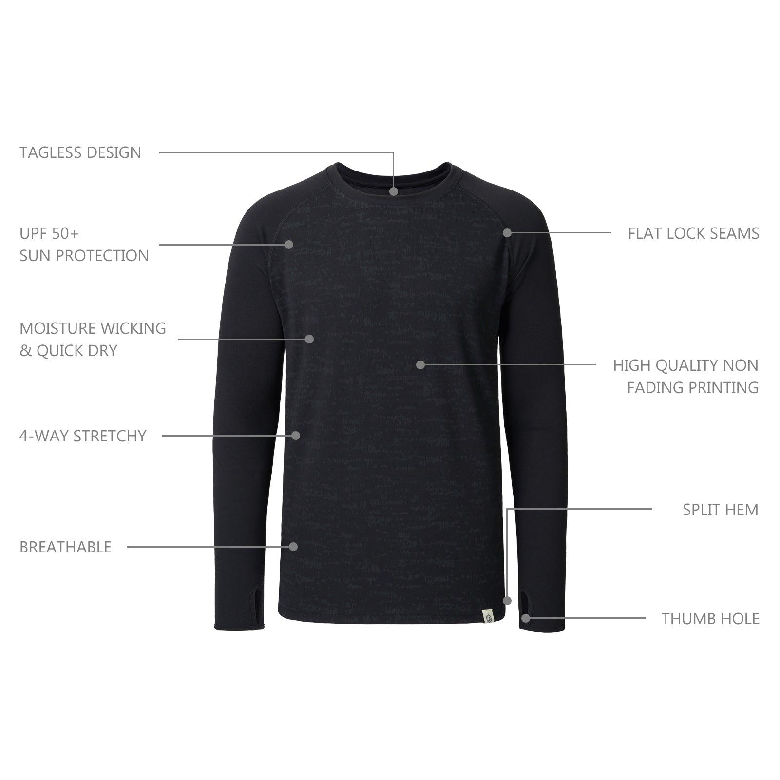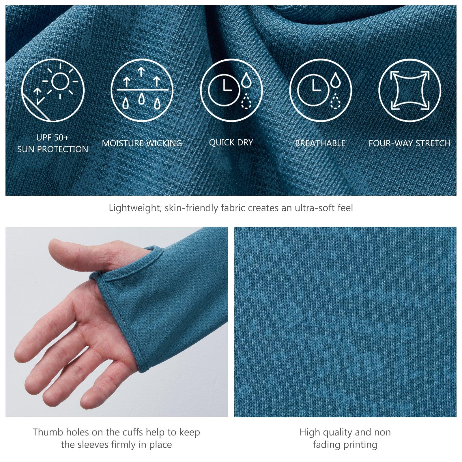• The 4-way stretch fabric and raglan sleeves design allows you to get more freedom of movement; The thumb hole helps to make sleeves in place when moving your arms and provides more sun protection area on your hand