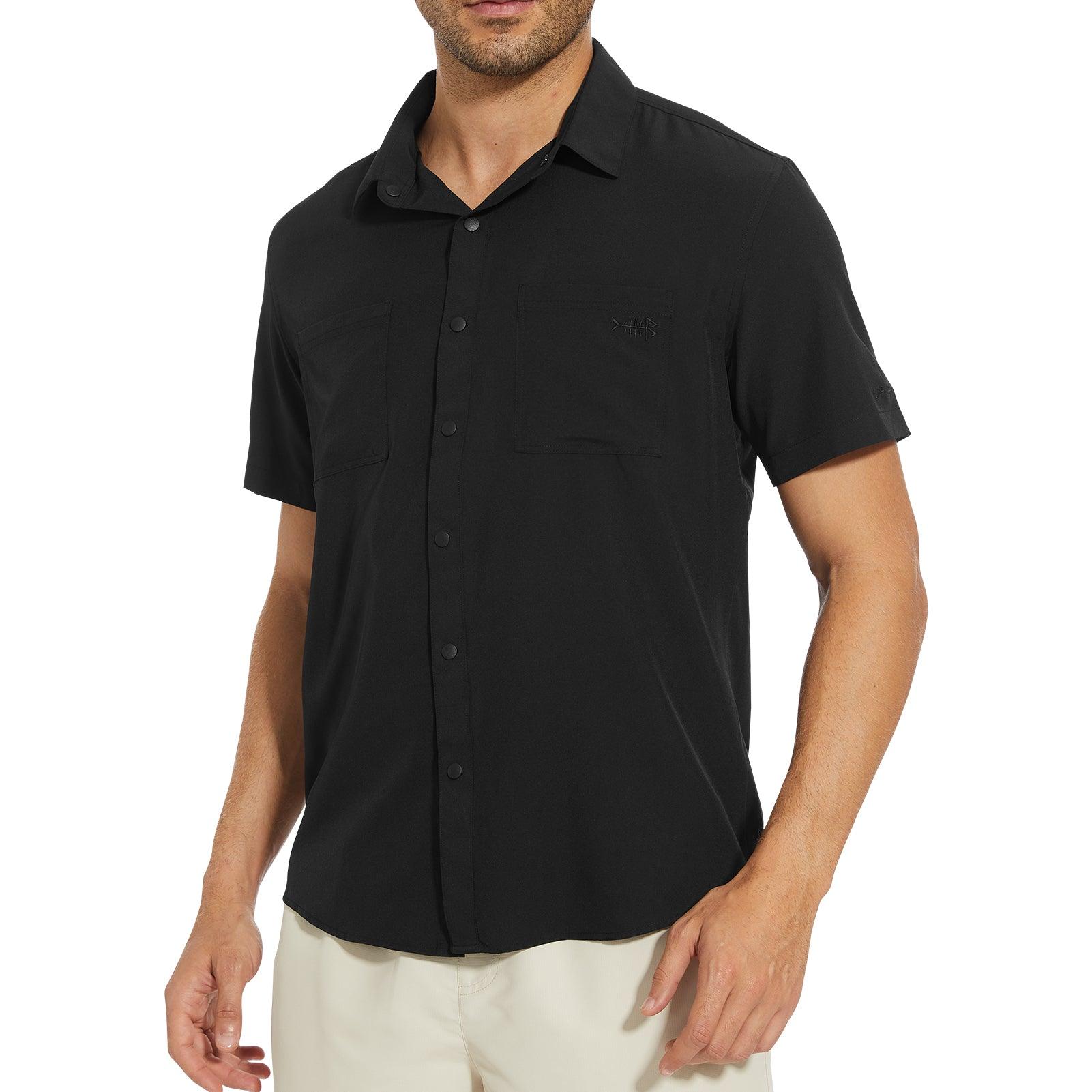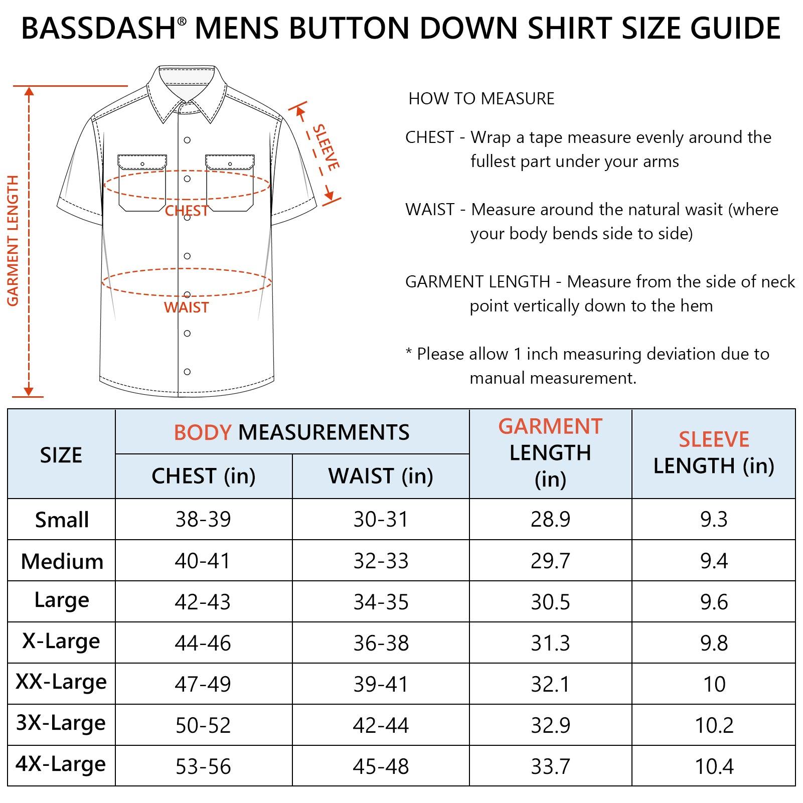 This BASSDASH button down short sleeve shirt is featured with UPF 50+ sun protection, moisture-wicking property, and breathability. This classic urban regular-fit shirt has two pockets and rounded hemline to suit for different wearing styles and needs.