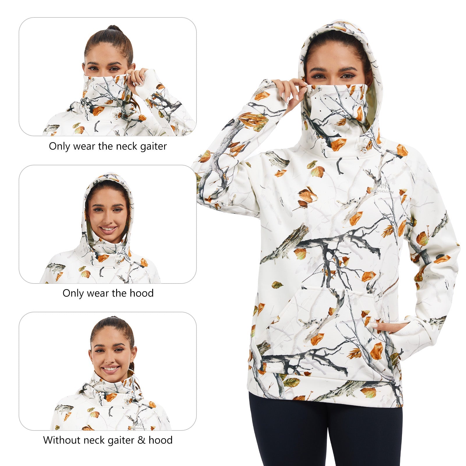 BASSDASH Women’s Fleece Hoodie with Neck Gaiter