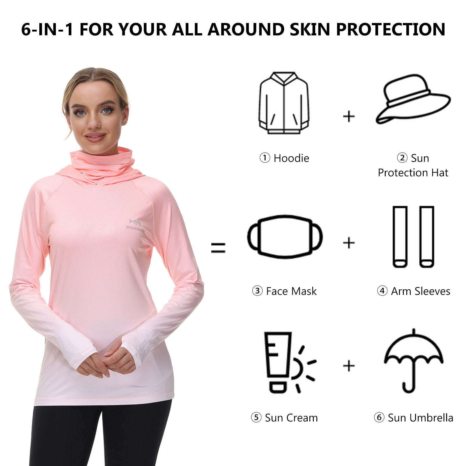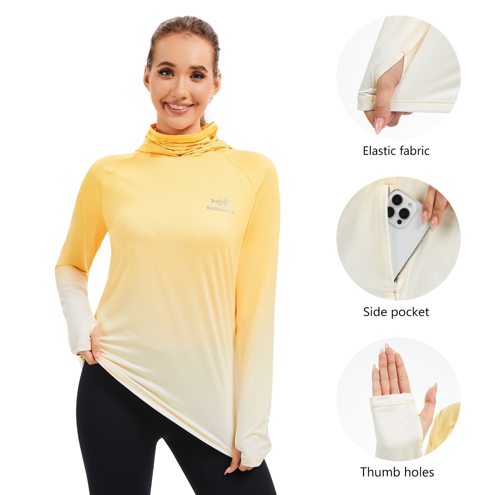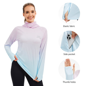 Women's UPF 50+ Fishing Hoodies with Face Mask Thumb Holes FS23W