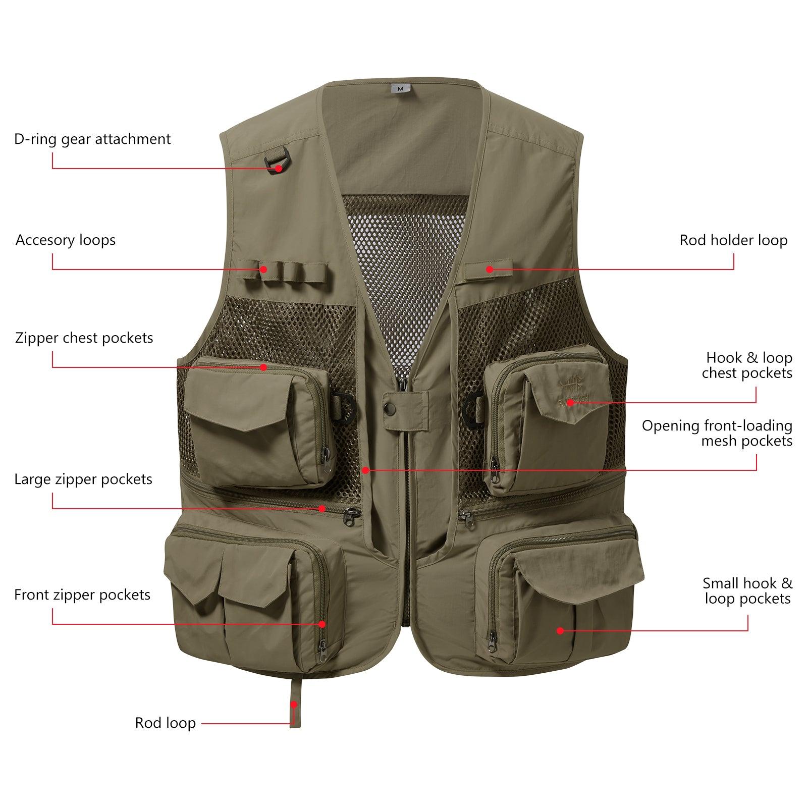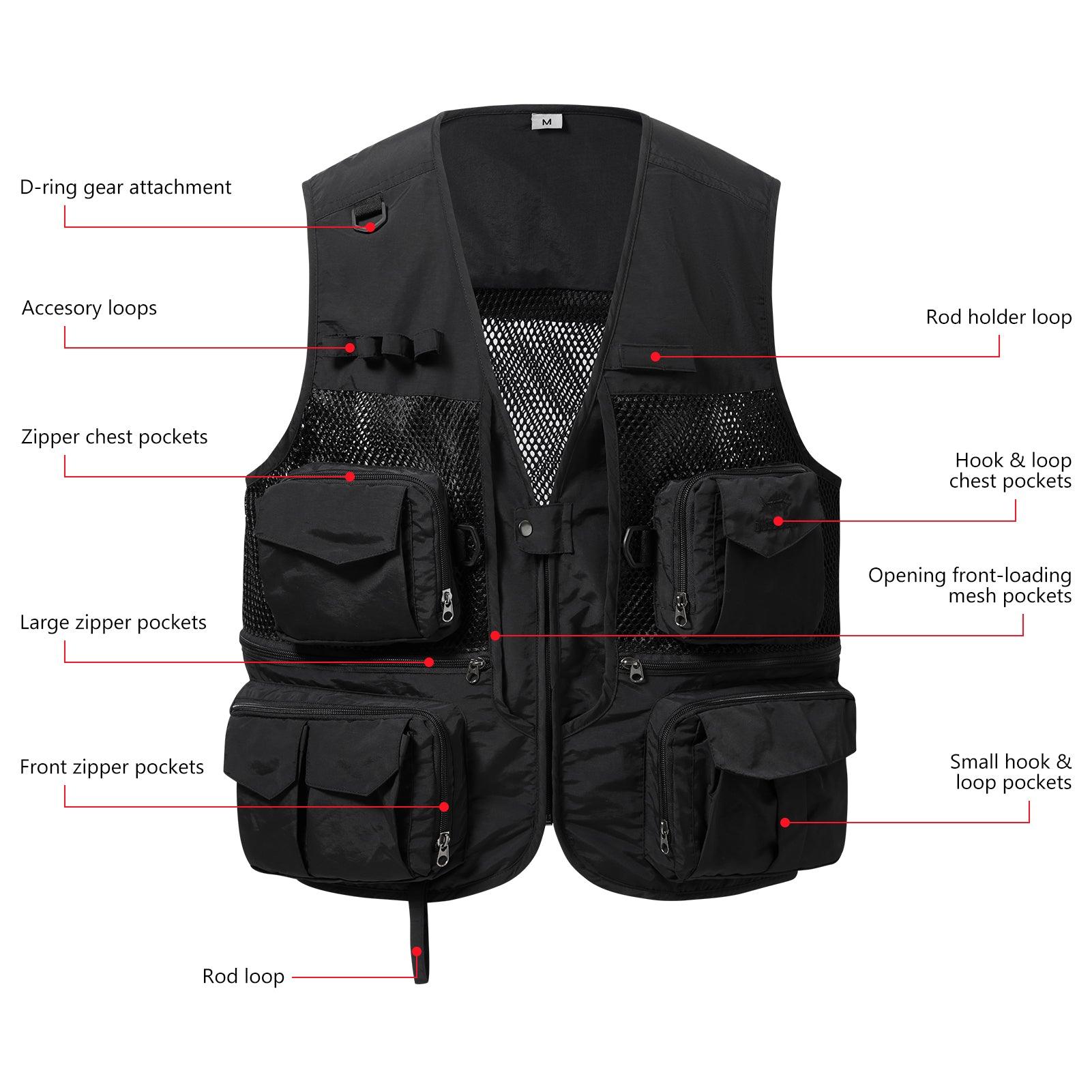 This BASSDASH mens fishing vest is your new best friend for outdoor adventures! Whether you're fishing, hiking, camping, photographing, on safari, or traveling, this versatile vest has got you covered. There are 16 interior and exterior pockets that can store all of your essentials in different ways that suit your needs. This versatile vest works for all seasons. Mesh design help you dry quickly, breathes well, and this trout fishing vest can be worn over layers in winter or by itself in summer.