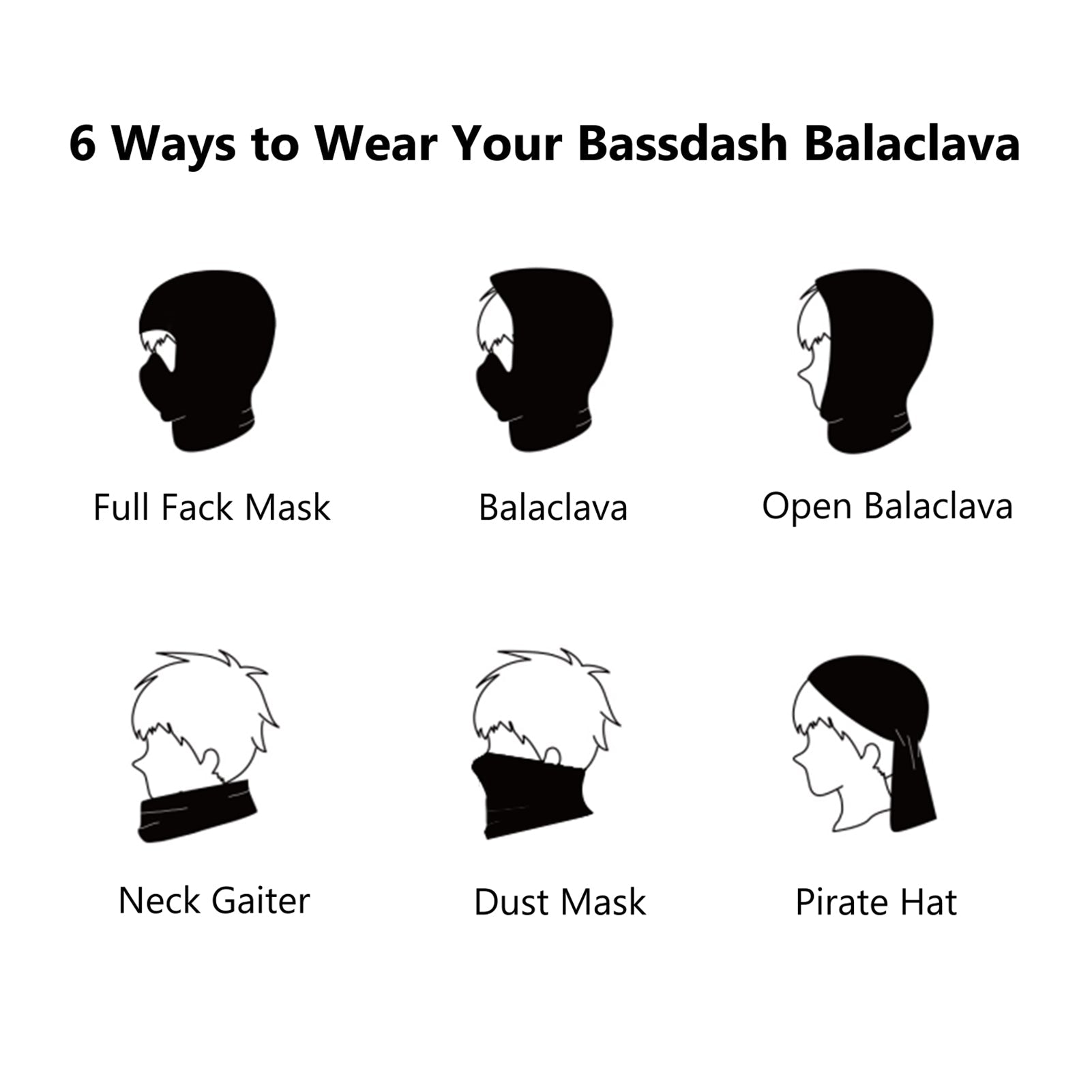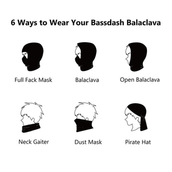 - Versatile hinged face opening design can be worn in different ways - balaclava, half face mask, open face mask, neck gaiter and pirate hat