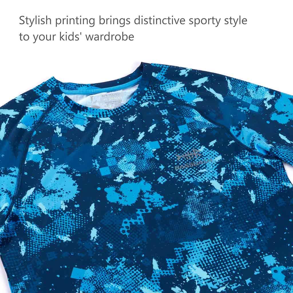 - The stylish printing and active stretch fabric bring sporty style to these ready-to-play kids; The arc splicing sleeve design also adds a feeling of vitality