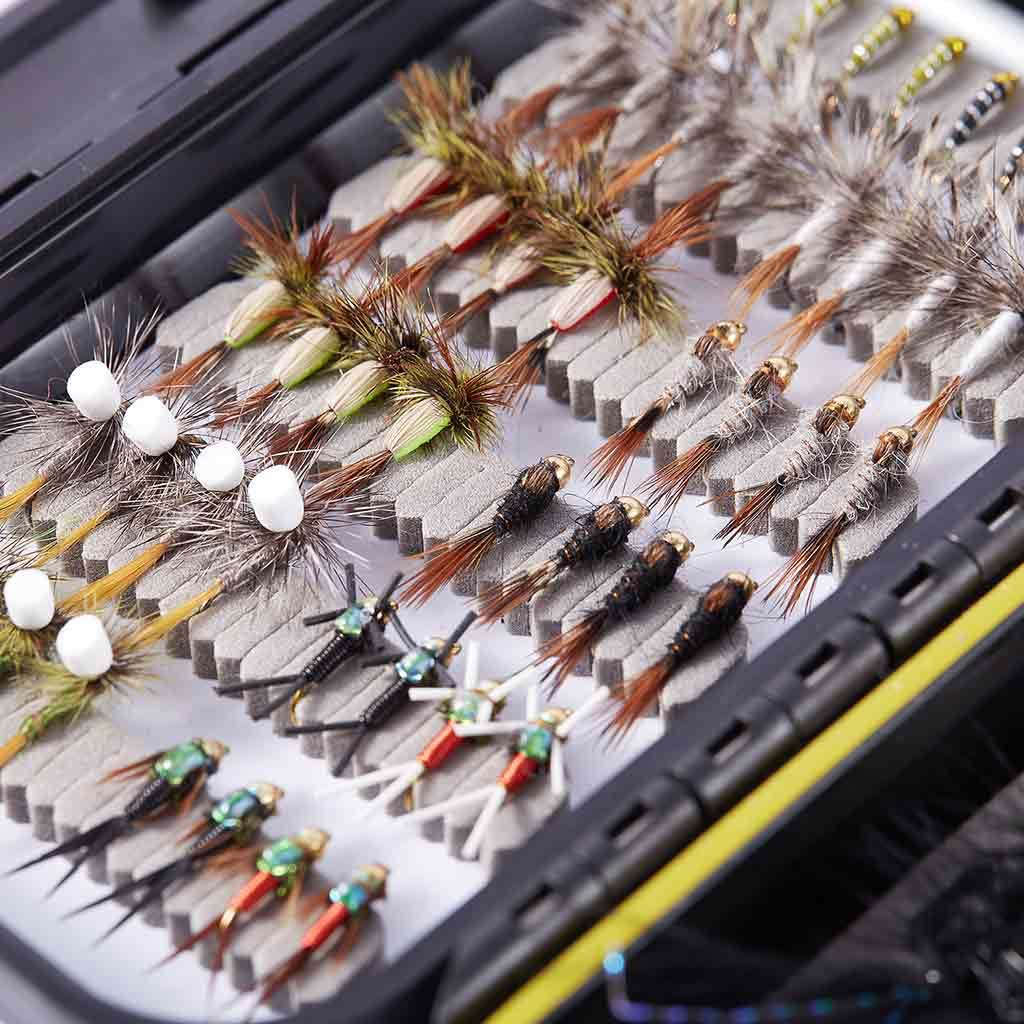 • The 60 flies in 18 patterns in this collection are some of the most realistic flies to be found and include: Beadhead Hare Copper, Red Neck Mary, Pink Nymph, Beadhead Perdigon, Tungsten Beadhead Peacock Perdigon, Pheasant Tail Nymph, Beadhead Pheasant Tail, Griffith’s Gnat, Klinkhammer, Tungsten Beadhead Jig Nymph, Jig Elk, Elk Hair Caddis, Fab Blob