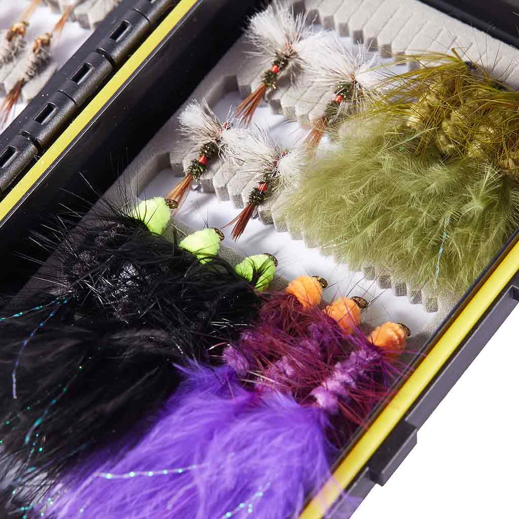 • This flies kit comes locked and loaded in a durable, double-sided waterproof fly box