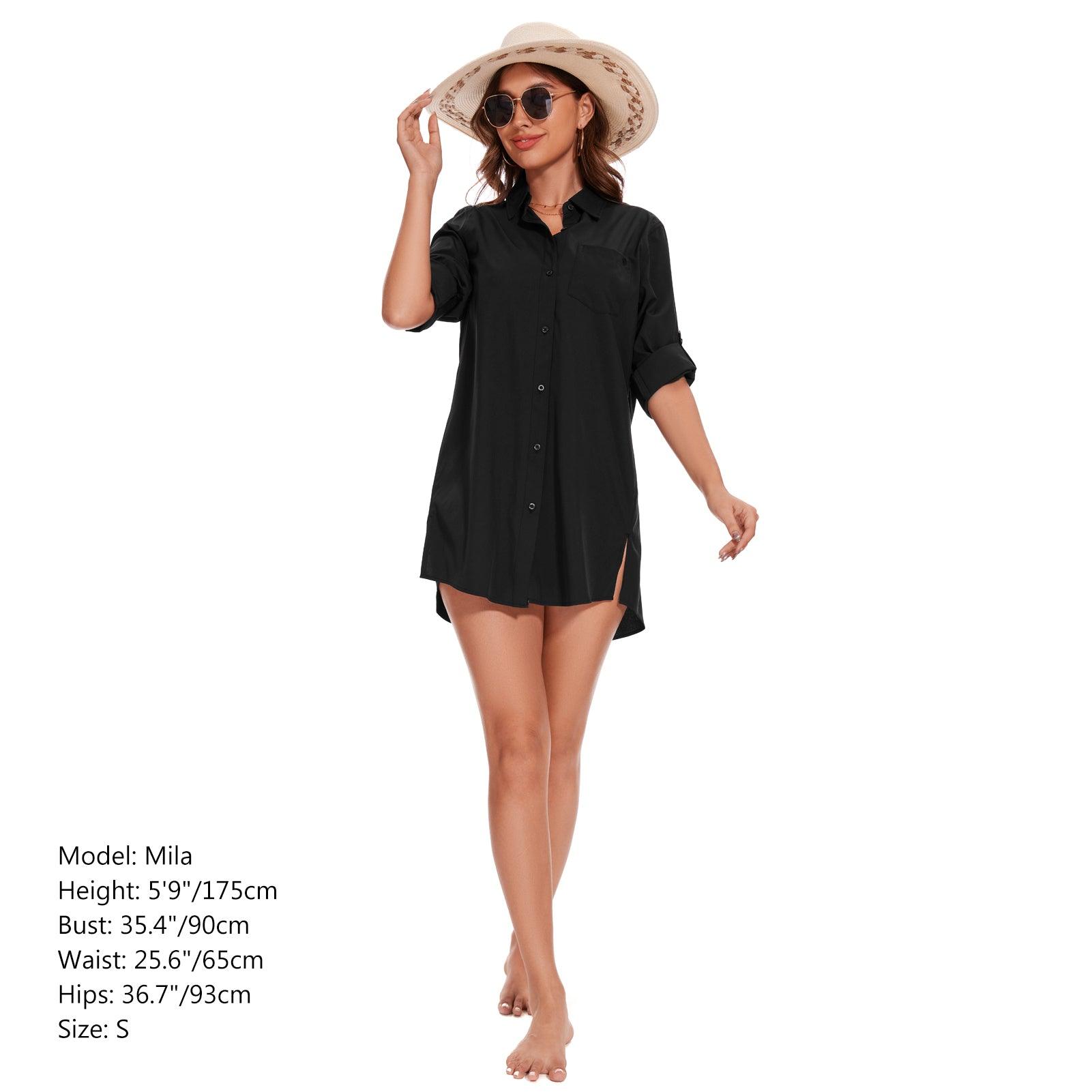 These shirt dresses for women are the ultimate solution for sun protection. Made of UPF 50+ fabric, it ensures that your skin remains safe from harmful UVA & UVB rays. With mesh panels under the arm and roll-up sleeves with button tabs, you can enjoy superior airflow and stay cool even in the hottest weather. The chest pocket and side split hem add to the overall style of this shirt dress, which pairs well with leggings, shorts, heels, sneakers, or even flip flops. Get your hands on this must-have button down shirt dress and enjoy your summer without any worries.