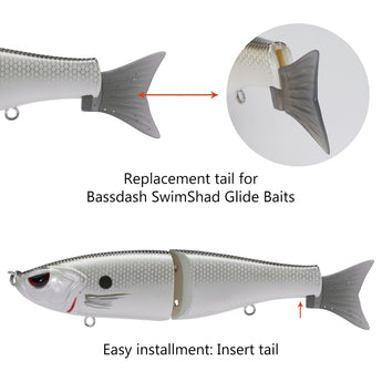 • Replacement tails for Bassdash SwimShad 7in/2.2oz Glide Baits