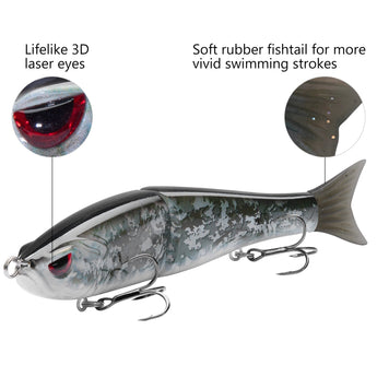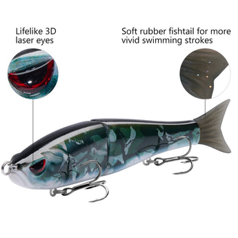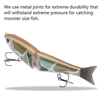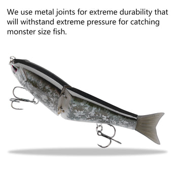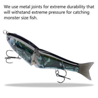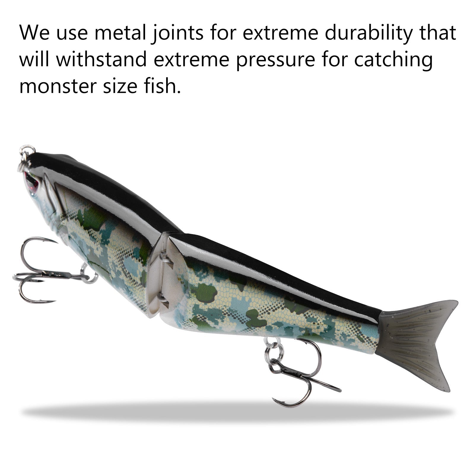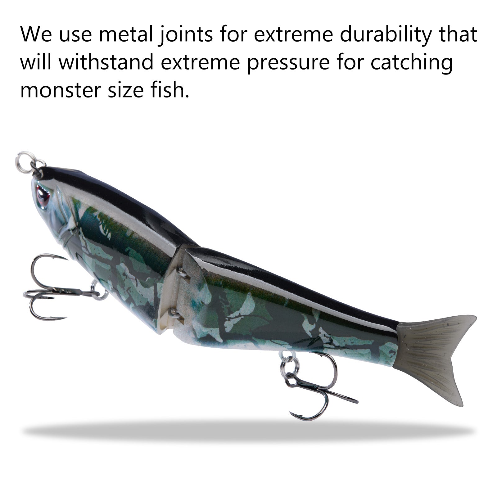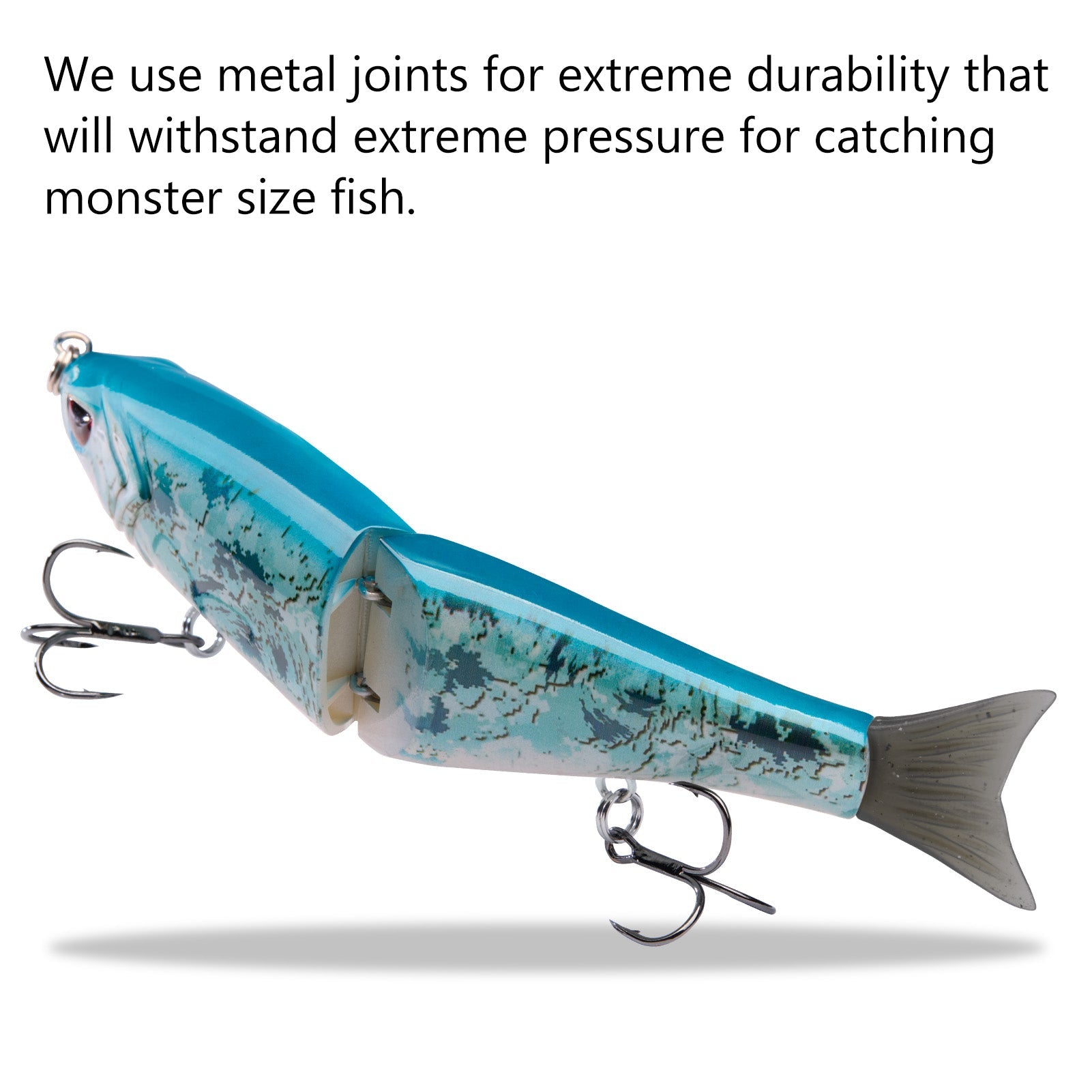 • The hard swimbaits made of heavy duty ABS material can withstand the wear and tear from fighting fish; Metal Joints for extreme durability that will withstand pressure for catching monster size fish
